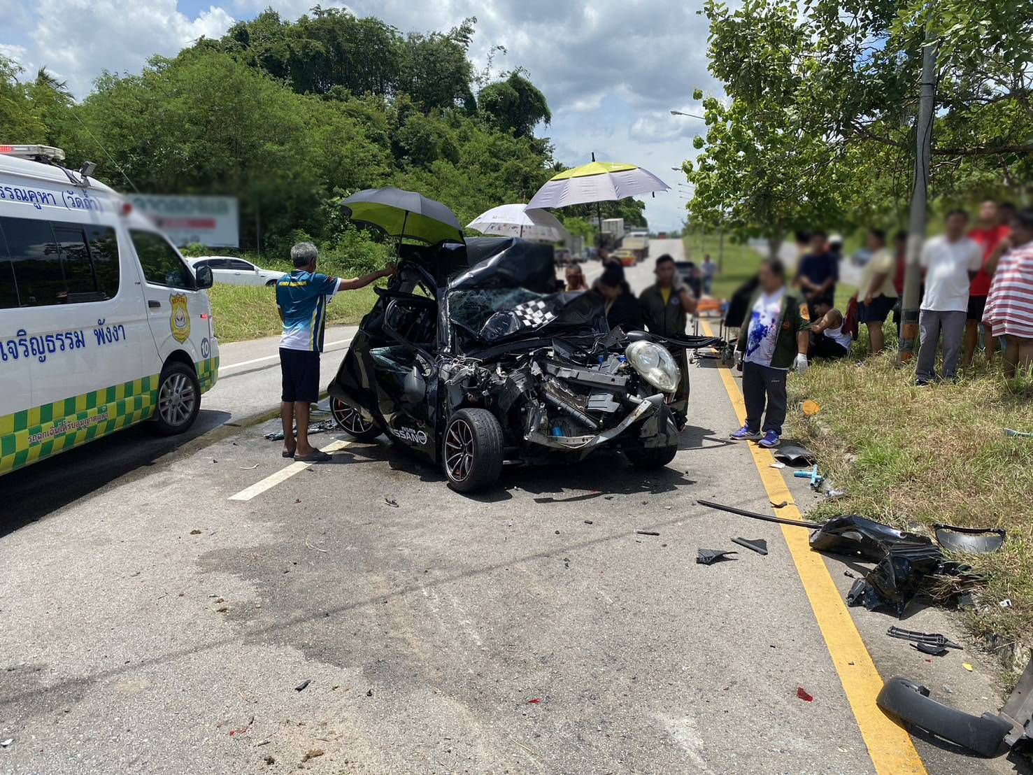 พบรถเทรลเลอร์ อีซูซุ สีขาว ป้ายทะเบียน สุราษฎร์ธานี ชนกับรถยนต์นั่งส่วนบุคคล นิสสัน สีดำ และรถยนต์กระบะ มิตซูบิชิ สีเทา พบว่ามีผู้บาดเจ็บรวม 4ราย และ มีติดอยู่ในรถ 3 ราย จึงประสานชุดปฏิบัติการกู้ภัยสำนักงาน ปภ.พังงา นำเครื่องมือตัดถ่างเข้าทำการช่วยเหลือผู้บาดเจ็บนำส่งโรงพยาบาลตะกั่วทุ่ง