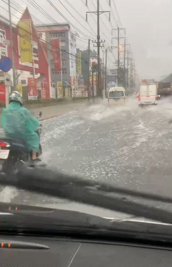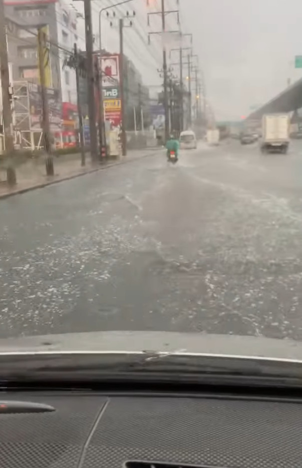 11.31 น. ถนนเทพรัตน (บางนา-ตราด) ขาเข้า หน้าไทวัสดุ บางนา ช่องทางคู่ขนาน น้ำท่วมขังทุกช่องทาง รถติดมาก #รายงานจราจร #รถติด #น้ำท่วม #FM91