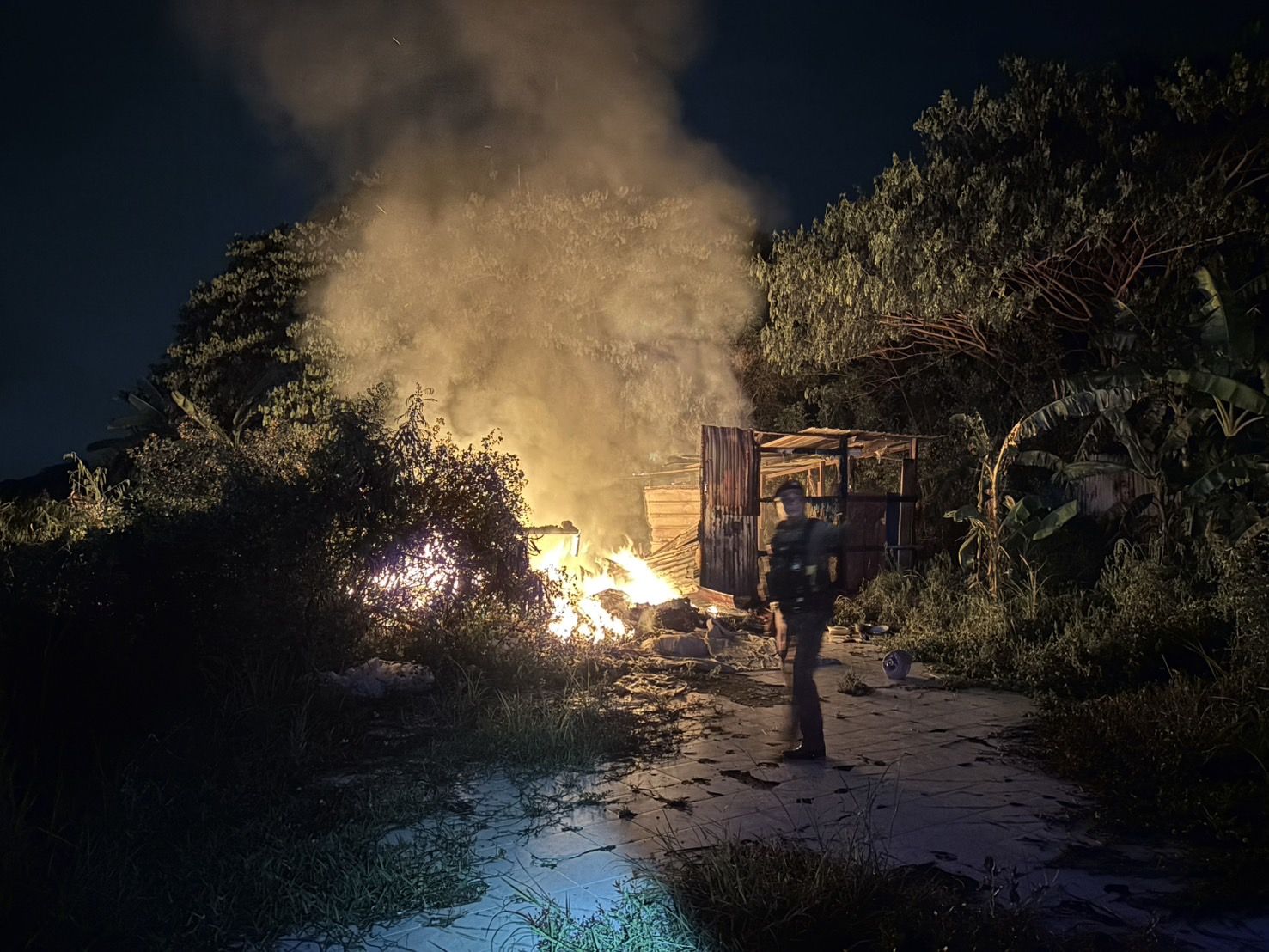 ลักษณะที่เกิดเหตุเป็นเพิงพักชั้นเดียว โครงสร้างไม้หลังสังกะสี ใช้เป็นที่พักอาศัย ต้นเพลิงเกิดขึ้นบริเวณข้างเพิงพัก เพลิงลุกไหม้เสียหายทั้งหมด พื้นที่เพลิงไหม้เสียหายโดยประมาณ 10 ตารางวา รถดับเพลิงใช้น้ำทำการดับเพลิงสงบ