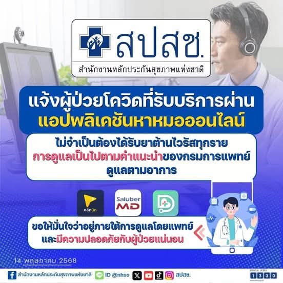 สำนักงานหลักประกันสุขภาพแห่งชาติ หรือ สปสช. ชี้แจง กรณีประชาชนติดเชื้อโควิด-19 และรับบริการแพทย์ทางไกล (Tele-medicine) ในเครือข่าย สปสช. แล้วไม่ได้รับยาฟาวิพิราเวียร์ หรือยาต้านไวรัสอื่นว่า ผู้ป่วยไม่ได้จำเป็นต้องรับยาต้านไวรัสทุกราย แพทย์จะดูแลตามอาการ ข้อบ่งชี้ และไกด์ไลน์ที่กรมการแพทย์ กระทรวงสาธารณสุข กำหนดหลักเกณฑ์ คือ