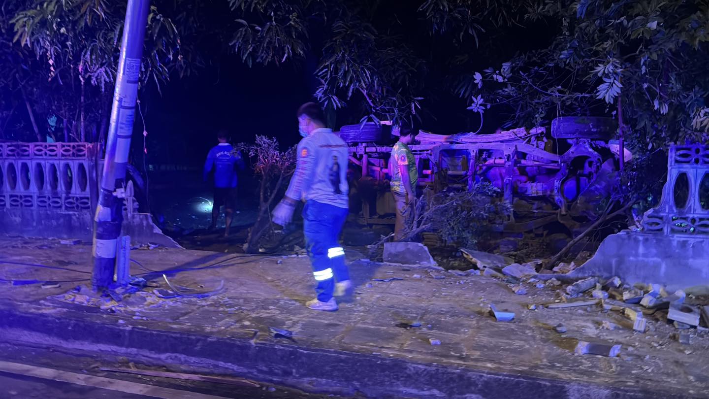 รถกระบะเสียหลักฟาดกำแพงบ้านริมถนน คุณลุงวัย 60 กว่าปี ประธานเครือข่ายกองทุนหมู่บ้านฯ เสียชีวิต จ.มหาสารคาม