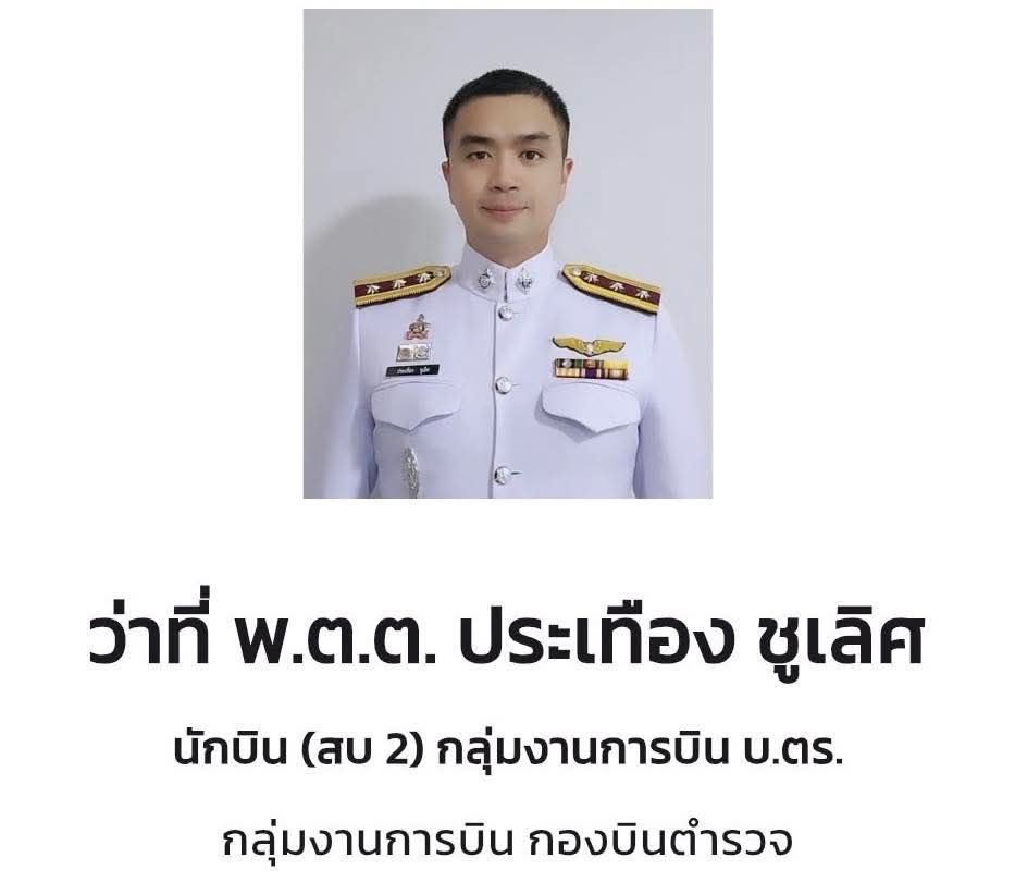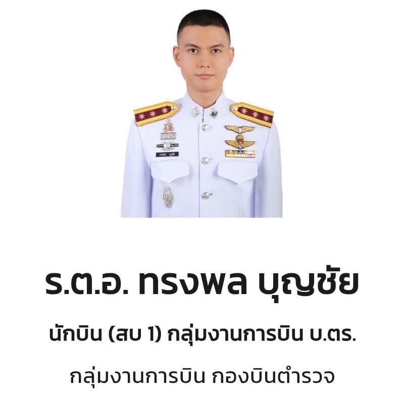 2. ร.ต.อ.ทรงพล บุญชัย อายุ 34 ปี ตำแหน่ง นักบิน (สบ 1) กลุ่มงานการบิน กองบินตำรวจ มอบเงินช่วยเหลือเบื้องต้น 1.4 ล้านบาท ปูนบำเหน็จเลื่อนยศเป็น พ.ต.อ.