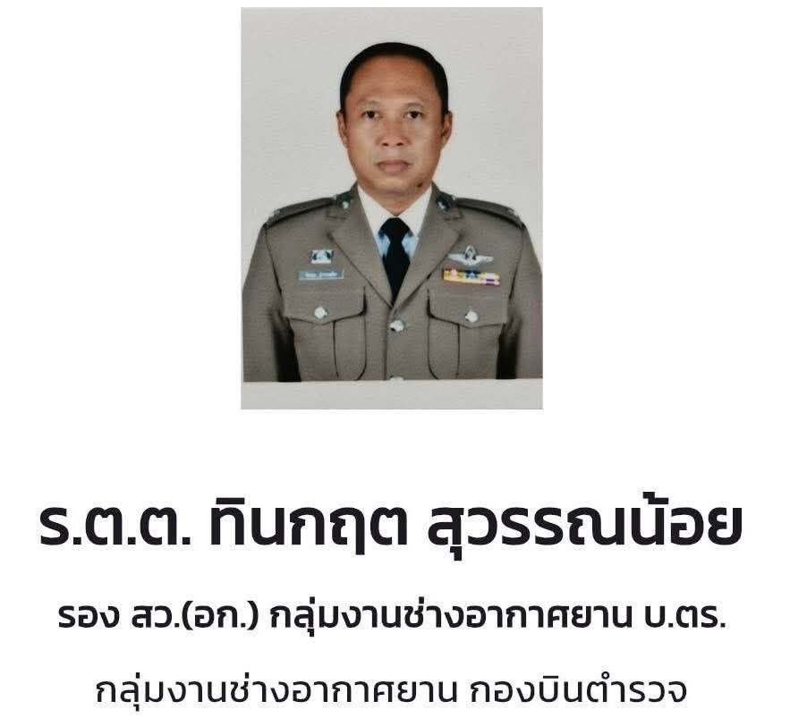3. ร.ต.ท.ทินกฤต สุวรรณน้อย อายุ 55 ปี ตำแหน่ง ช่างอากาศยาน (สบ1) รอง สว.(อก.) กลุ่มงานช่างอากาศยาน กองบินตำรวจ มอบเงินช่วยเหลือเบื้องต้น 1.9 ล้านบาท ปูนบำเหน็จเลื่อนยศเป็น พ.ต.ท.