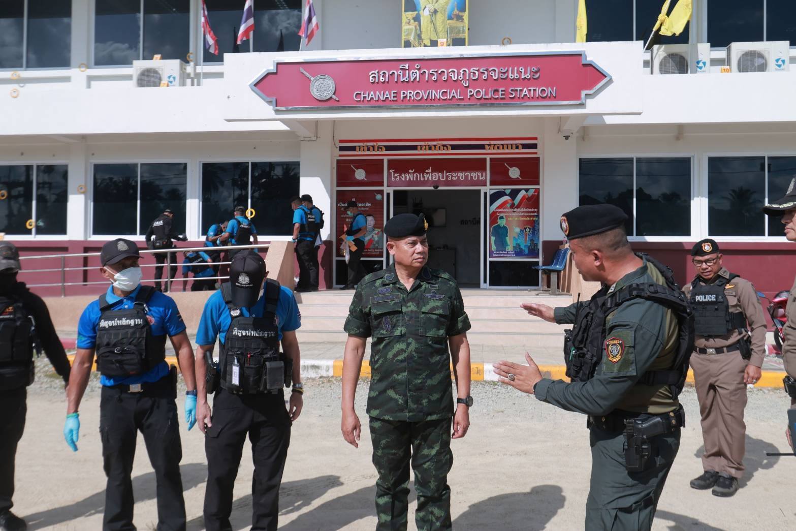 อย่างไรก็ตาม เจ้าหน้าที่ทุกฝ่ายยังคงตรึงกำลังและตรวจสอบพื้นที่โดยรอบ เพื่อป้องกันเหตุร้ายซ้ำซ้อน พร้อมขอความร่วมมือจากประชาชนให้แจ้งเบาะแสหากพบเห็นสิ่งผิดปกติ สามารถแจ้งข้อมูลได้ที่หมายเลขโทรศัพท์สายตรง แม่ทัพภาคที่ 4 / ผู้อำนวยการรักษาความมั่นคงภายในภาค 4 โทร 061-1732999 หรือเบอร์สายด่วน กอ.รมน.ภาค 4 สน. 1341 และหน่วยเฉพาะกิจในพื้นที่ได้ตลอด 24 ชั่วโมง