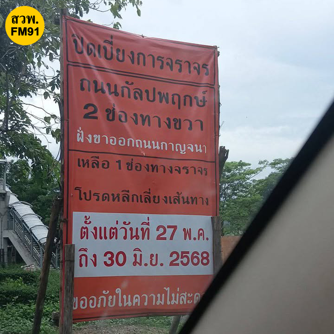 29 พ.ค. 68 เวลา 18.10 น. ถ.กัลปพฤกษ์ ขาออก มาจากต่างระดับสวนเลียบ มุ่งหน้ากำนันแม้น ผ่านตรงแนวก่อสร้างด่านชั่งน้ำหนัก ใกล้กับบริษัท ไทยสมายล์บัส จำกัด (สาขากัลปพฤกษ์) ช่วงกม.6+500-7+500
