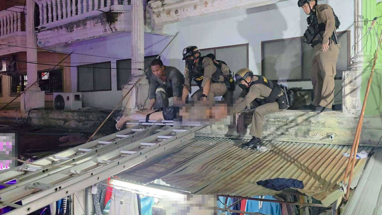 วันที่ 29 พฤษภาคม 2568 ร.ต.อ.สนธยา ขนทรัพย์ รอง สวป.สภ.เมืองพัทยา รับแจ้งเหตุชายมีอาการคลุ้มคลั่ง ปีนขึ้นไปบนหลังคากันสาดชั้น 2 ของอาคารพาณิชย์ ใจกลางแหล่งสถานบันเทิง ซอยชัยพูน ถนนพัทยาสายสาม ม.9 ต.หนองปรือ อ.บางละมุง จ.ชลบุรี จึงนำกำลังสายตรวจและเจ้าหน้าที่บรรเทาสาธารณภัยรีบไปตรวจสอบ