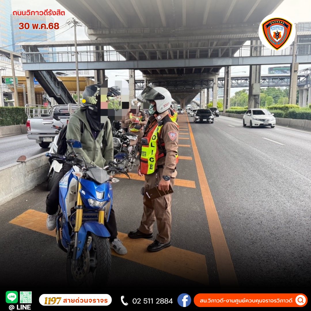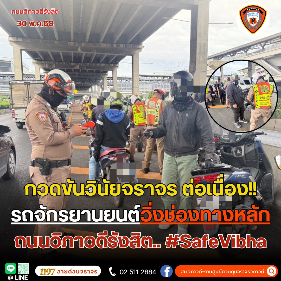 สน.วิภาวดี-งานศูนย์ควบคุมจราจรวิภาวดีรังสิต กวดขันวินัยจราจรรถจักรยานยนต์ใช้ช่องทางหลัก เช้านี้กว่า 35 ราย "เจอจับปรับจริง"