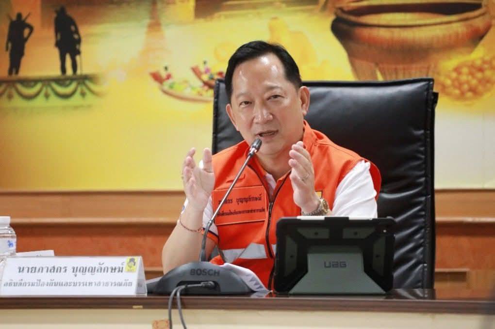 “จังหวัดอ่างทองเป็นหนึ่งในพื้นที่ที่ประสบกับปัญหาน้ำท่วมในช่วงฤดูฝนเป็นประจำทุกปี โดยจากข้อมูลย้อนหลัง 3 ปี พบว่ามีพื้นที่ท่วมซ้ำซากใน อ.วิเศษชัยชาญ อ.ไชโย อ.เมืองฯ และ อ.ป่าโมก เนื่องจากเป็นพื้นที่ลุ่มต่ำนอกคันกันน้ำ ซึ่งจากการติดตามการทำงานในวันนี้ เห็นได้ว่าจ.อ่างทองได้เตรียมการรับมืออย่างเข้มข้น ผ่านการบูรณาการร่วมกับหน่วยงานทุกภาคส่วนเฝ้าระวังและติดตามสถานการณ์อย่างใกล้ชิด ทบทวนแผนเผชิญเหตุอุทกภัย มีการเตรียมจัดตั้งศูนย์บัญชาการเหตุการณ์ การเตรียมซักซ้อมแผนอพยพ ตลอดจนการก่อสร้างเขื่อนป้องกันตลิ่งบริเวณแม่น้ำเจ้าพระยาและแม่น้ำน้อย และการวางระบบป้องกันน้ำท่วมพื้นที่ชุมชน เพื่อป้องกันและบรรเทาผลกระทบที่อาจเกิดกับประชาชนในพื้นที่ ซึ่งตรงนี้จังหวัดสามารถดำเนินการได้อย่างมีประสิทธิภาพ อย่างไรก็ตาม ขอฝากให้จังหวัดดูแลในส่วนของการให้ความช่วยเหลือประชาชนหลังเกิดภัย โดยขอให้จังหวัดตรวจสอบวงเงินทดรองราชการคงเหลือของจังหวัด หากไม่เพียงพอขอให้ทำเรื่องขอขยายวงเงินมาที่ ปภ. ทันที ไม่ต้องรอให้เกิดภัยขึ้นในพื้นที่ เพื่อให้สามารถช่วยเหลือประชาชนได้ทันที"