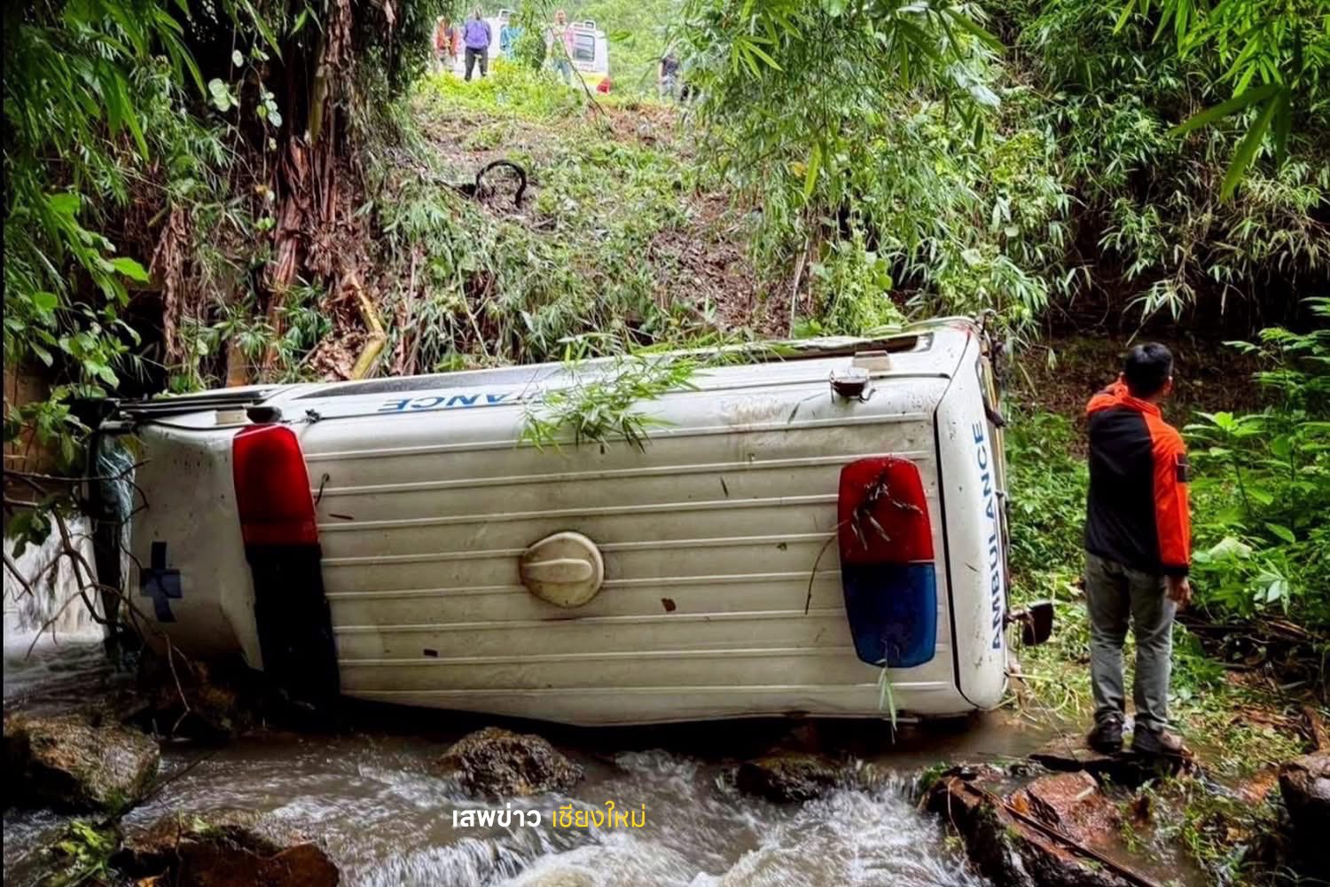 เช้าวันนี้ (31 พ.ค. 68) เวลา 06.50 น. เกิดเหตุรถตู้รีเฟอร์เสียหลักตกเหว บริเวณ กม.102 บ้านน้ำดั้น ต.ม่อนจอง อ.อมก๋อย จ.เชียงใหม่ ขณะกำลังนำผู้ป่วยเดินทางไปยังโรงพยาบาล จุดเกิดเหตุเป็นทางเขาลาดชันและฝนตกหนักต่อเนื่อง ทำให้รถเสียหลักพลัดตกข้างทาง อีกทั้งบริเวณดังกล่าวไม่มีสัญญาณโทรศัพท์ ทำให้การประสานงานล่าช้า ในรถมีผู้โดยสารรวม 4 ราย ประกอบด้วยคนขับ 1 คน พยาบาล 1 คน ผู้ป่วยและญาติรวมอีก 2 คน เบื้องต้นได้รับบาดเจ็บทั้งหมด แต่เป็นบาดเจ็บเล็กน้อย ขณะนี้ทั้งหมดถูกนำตัวส่งโรงพยาบาลเรียบร้อยแล้ว ปลอดภัยทุกคน