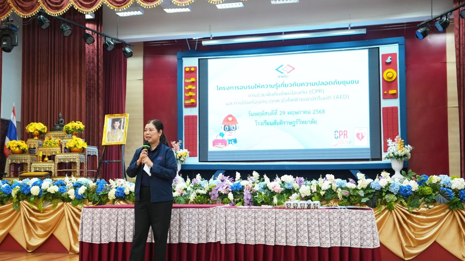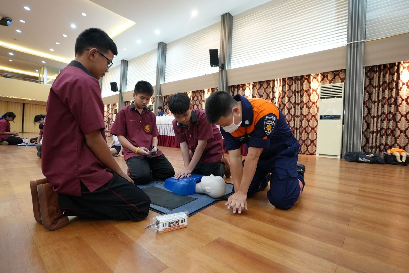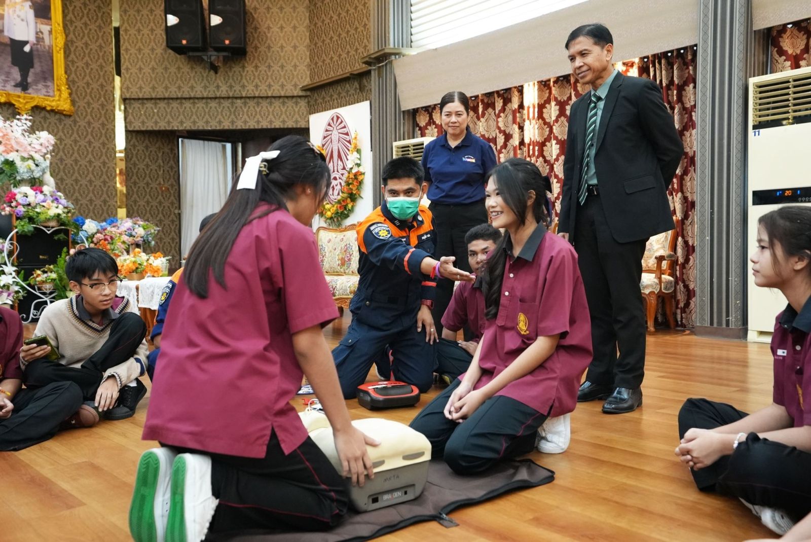 โดยมีเจ้าหน้าที่ฝ่ายรักษาความปลอดภัยและกู้ภัย รฟม. เป็นวิทยากรในการอบรม โดยโครงการดังกล่าวเป็นการอบรมเกี่ยวกับการช่วยฟื้นคืนชีพเบื้องต้น (Cardiopulmonary Resuscitation : CPR) การใช้เครื่องกระตุกคลื่นไฟฟ้าหัวใจชนิดอัตโนมัติ (Automated External Defibrillator: AED) และการฝึกปฐมพยาบาลเบื้องต้น เพื่อให้นักเรียนสามารถนำความรู้ไปปฏิบัติจริงในสถานการณ์ฉุกเฉินได้อย่างถูกต้อง