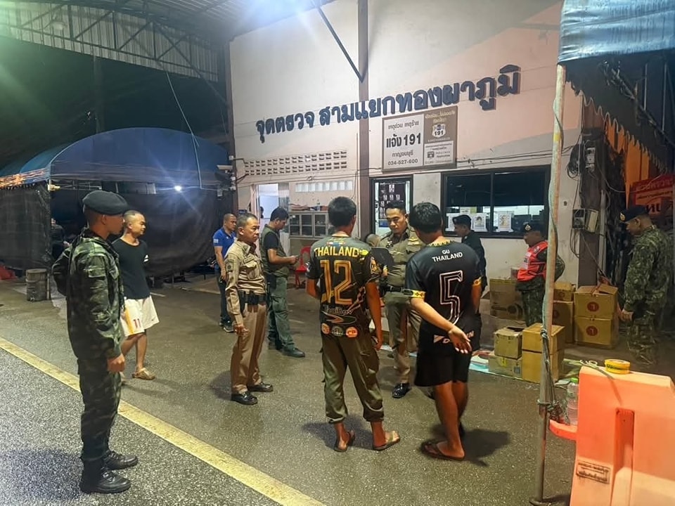 เมื่อวันที่ 1 มิ.ย.68 พ.ต.อ.ปริญญา ใคร่ครวญ ผกก.สภ.ทองผาภูมิ จ.กาญจนบุรี พ.อ.พรรณศักดิ์ เพียวพานิช ผบ.ฉก.ลาดหญ้า กกล.สุรสีห์ นายชาคริต ตันพิรุฬห์ นายอำเภอทองผาภูมิ พ.อ.ปิยเณศร์ ภัทรศาศวัตวงษ์ รอง ผบ.ฉก.ลาดหญ้า กกล.สุรสีห์ พ.ต.อ.กรณ์ สมคะเณย์ ผกก.ตม.จว.กาญจนบุรี พ.ต.อ.มานิต นาโควงศ์ ผกก.ตชด.13 พ.ต.ท.คณิศร พันบุดดา รอง ผกก.ป.สภ.ทองผาภูมิ ว่าที่ พ.ต.ต.ประสิทธิ์ วันเพ็ญ สวป.สภ.ทองผาภูมิ พ.ต.ต.พัชรพล อินเตจ๊ะ ผบ.ร้อย ตชด.135 นายวัลลภ จินดา ปลัดอำเภอทองผาภูมิ