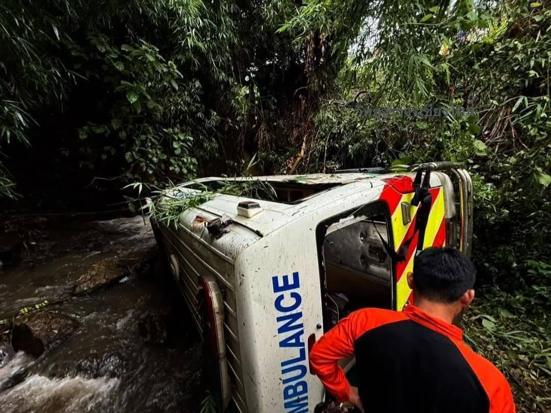 เวลา 08.00น. วันนี้ ( 2 มิ.ย. 2568 ) นายแพทย์วรัญญู จำนงประสาทพร นายแพทย์สาธารณสุขจังหวัดเชียงใหม่ พร้อมด้วยนางแสงดาว จำนงประสาทพร ประธานแม่บ้านสาธารณสุข สาขาจังหวัดเชียงใหม่ คณะผู้บริหาร และเจ้าหน้าที่สำนักงานสาธารณสุขจังหวัดเชียงใหม่ เข้าเยี่ยมและให้กำลังใจ ผู้ป่วยเด็กและญาติ ประเมินสภาพจิตใจผู้ป่วยและครอบครัว ไม่มีภาวะตื่นตระหนก ไม่มีภาวะเครียด ณ หอผู้ป่วยกุมารเวชกรรม ชั้น 4 ตึกเฉลิมพระเกียรติ 80 พรรษาฯ (ตึกสงฆ์อาพาธ) โรงพยาบาลจอมทอง หลังเกิดอุบัติเหตุ เมื่อวันที่ 31 พ.ค. 2568 เวลาประมาณ 06.24 น. ขณะส่งตัวผู้ป่วยเด็ก โรคลมชัก ดริปยา Dilantin มีบิดาและมารดา พยาบาล 1 คน กับ พขร. 1 คน รวมเป็น 5 คน ทั้งหมดรู้สึกตัวดี ไม่มีผู้เสียชีวิต จุดเกิดเหตุที่บ้านน้ำดั้นก่อนถึงดอยมูเซอร์ (ดอยสูงสุดของถนน) ซึ่งเป็นทางคดเคี้ยว ฝนตก ทำให้รถรีเฟอร์ของ รพ.แม่ตื่น เสียหลักตกเหวลึก 10 เมตร