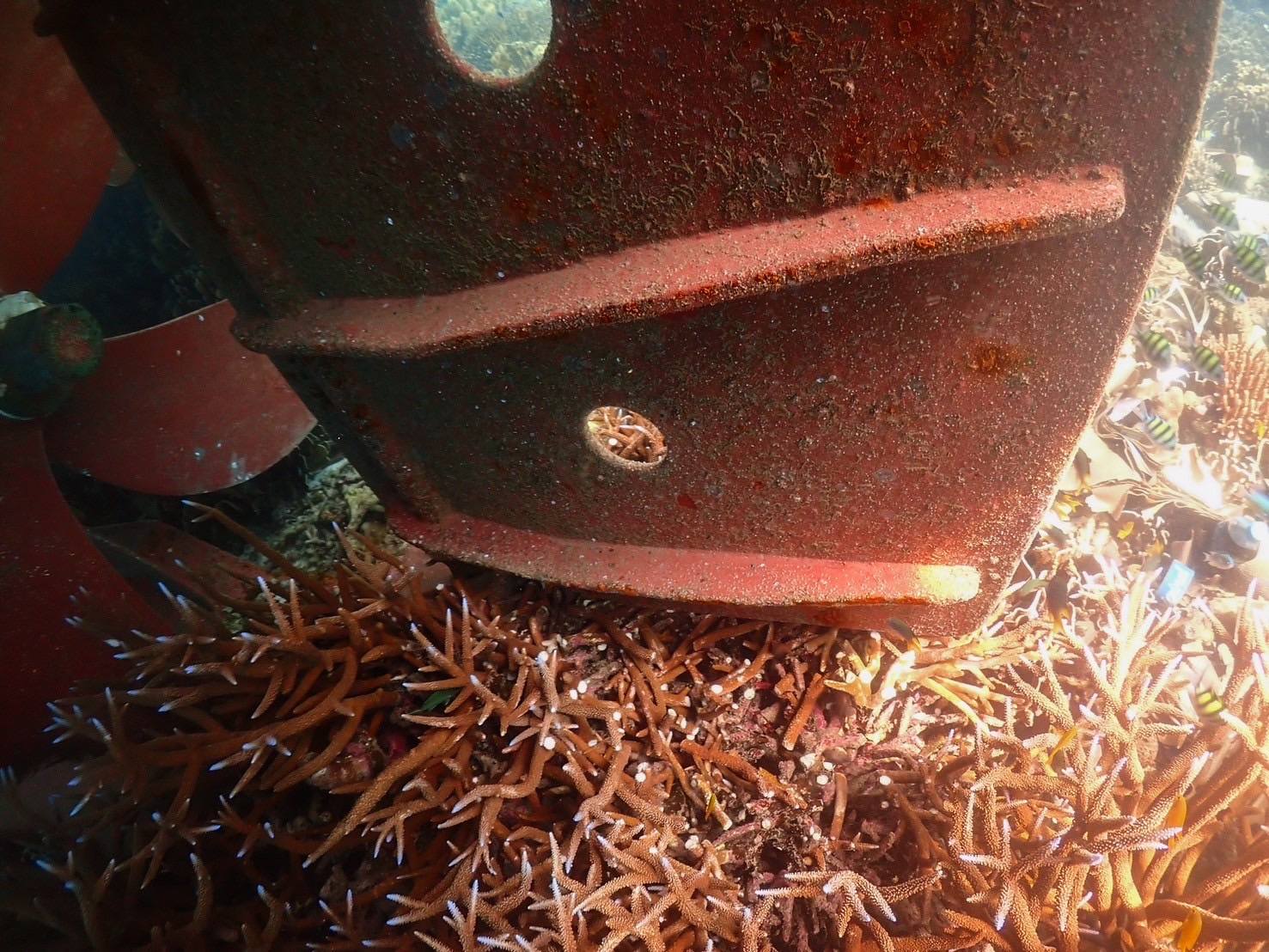 สำหรับชนิดปะการังที่ได้รับผลกระทบหลัก ได้แก่ ปะการังสีน้ำเงิน (Heliopora coerulea) เสียหายมากที่สุดประมาณ 80% ของปะการังที่ถูกชน ปะการังเขากวาง (Acropora sp.) เสียหายประมาณ 15% ปะการังโขด (Porites lutea) เสียหายประมาณ 5% นอกจากนี้ยังมี ปะการังสมองร่องสั้น (Platygyra daedalea) แตกหัก 4 โคโลนี, ปะการังดอกกะหล่ำ (Pocillopora) แตกหัก 3 โคโลนี และปะการังดาวเหลี่ยม (Leptastrea purpurea) แตกหัก 1 โคโลนี