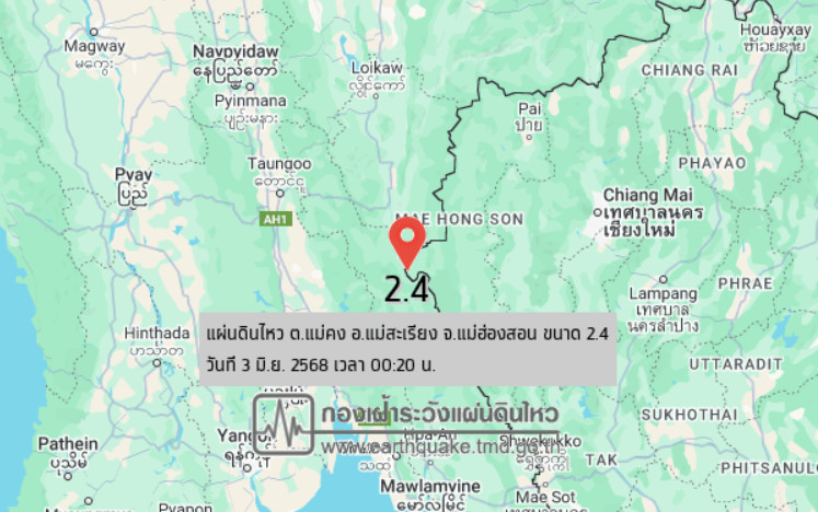 แผ่นดินไหว ขนาด 2.4 ที่แม่สะเรียง จังหวัดแม่ฮ่องสอน