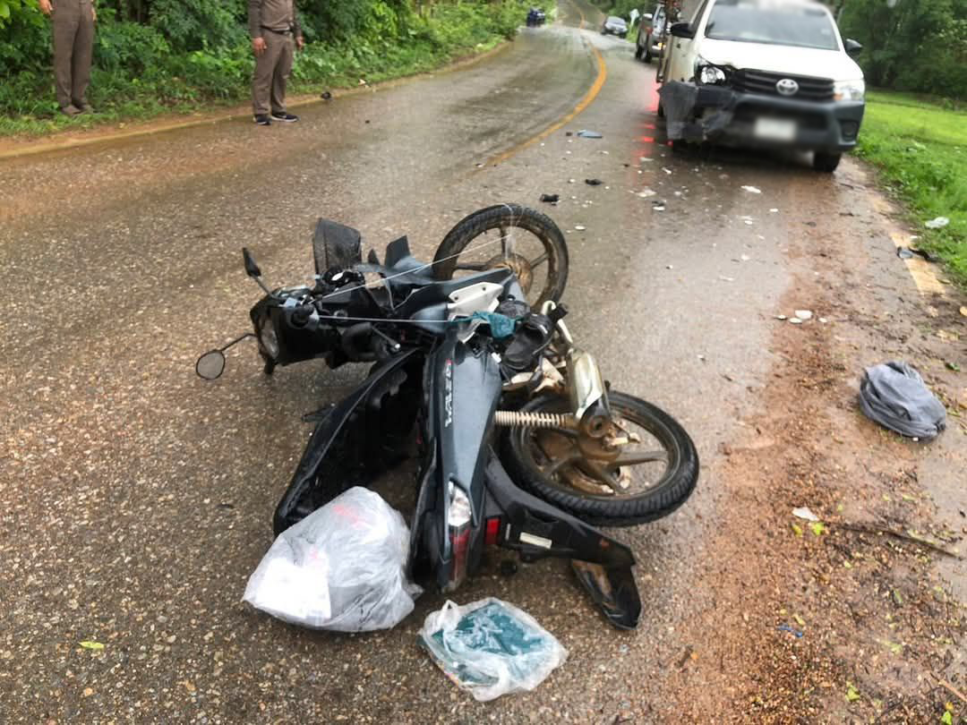 หนุ่มวัย 27 ปีขี่รถจักรยานยนต์ชนกับรถกระบะ เสียชีวิตกลางถนนสายแม่สะเรียง - แม่สามแลบ จ.แม่ฮ่องสอน