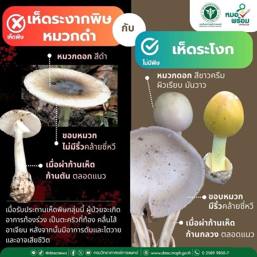 3 มิถุนายน 2568 นายแพทย์สุพัฒน์ ใจงาม ผู้อำนวยการโรงพยาบาลขุนยวม อ.ขุนยวม จ.แม่ฮ่องสอน ได้ออกมาประกาศเตือนให้ประชาชนระมัดระวังจากการเก็บเห็ดพิษในป่ามารับประทาน หลังจากได้มีราษฎรชาวอำเภอขุนยวม รับประทานเห็ดพิษเข้ามารับการรักษาตัวแล้ว 2 ราย โดยผู้ป่วยที่มีอาการอาเจียน ปวดบิดท้องอย่างรุนแรง และมีภาวะไตวาย หลังรับประทานเห็ดจากป่า