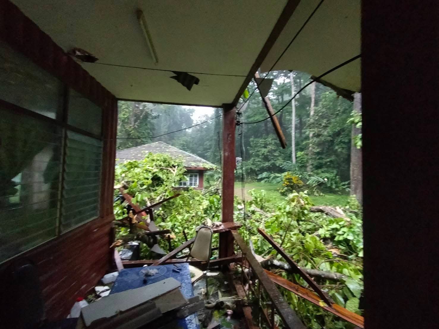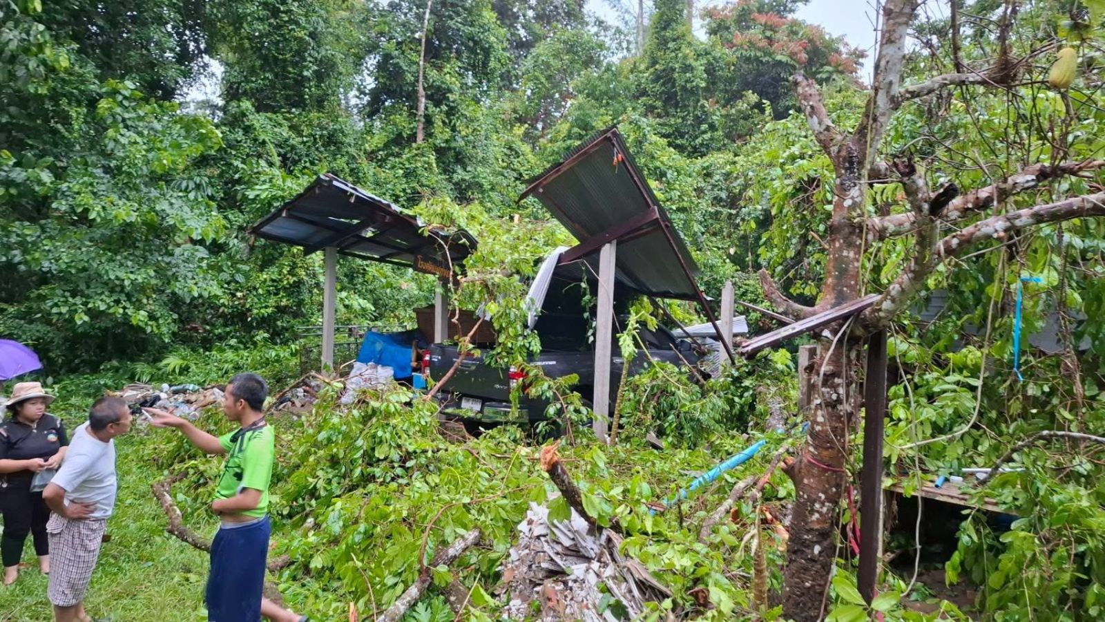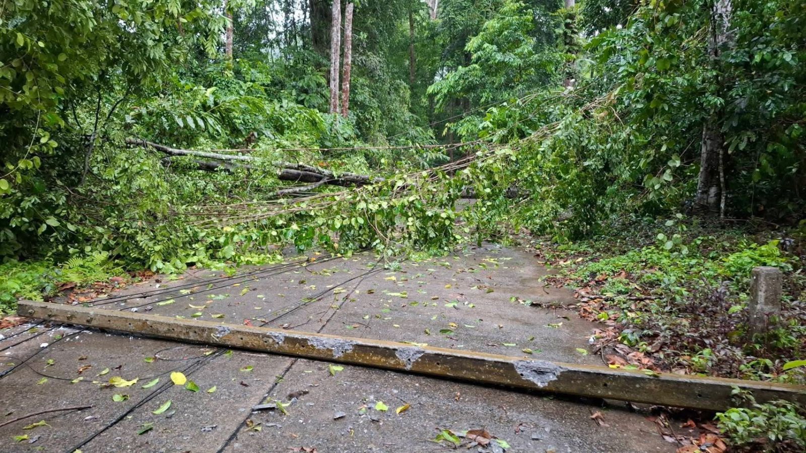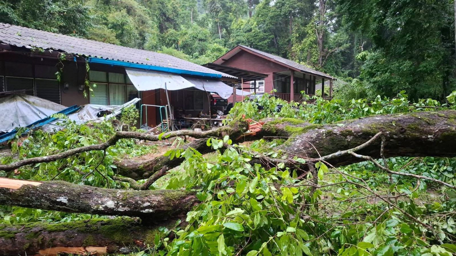 3 มิ.ย. 68 เวลา 16.00 น. มีฝนตกหนักมาก และลมกระโชกแรง จึงทำให้ต้นไม้ล้มทับเสาไฟฟ้า และบ้านพักเจ้าหน้าที่ ก่อให้เกิดความเสียหายและไฟดับเป็นบริเวณกว้าง ส่งผลให้ทรัพย์สินเสียหาย และเส้นทางไม่สามารถสัญจรได้