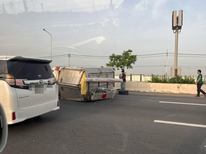 07.35 น. อุบัติเหตุ มอเตอร์เวย์ (ทล.7) มุ่งหน้าบ้านฉาง กม.43+800 รถยนต์ชนกัน แล้วมีพลิกตะแคง กีดขวางช่องทางขวา