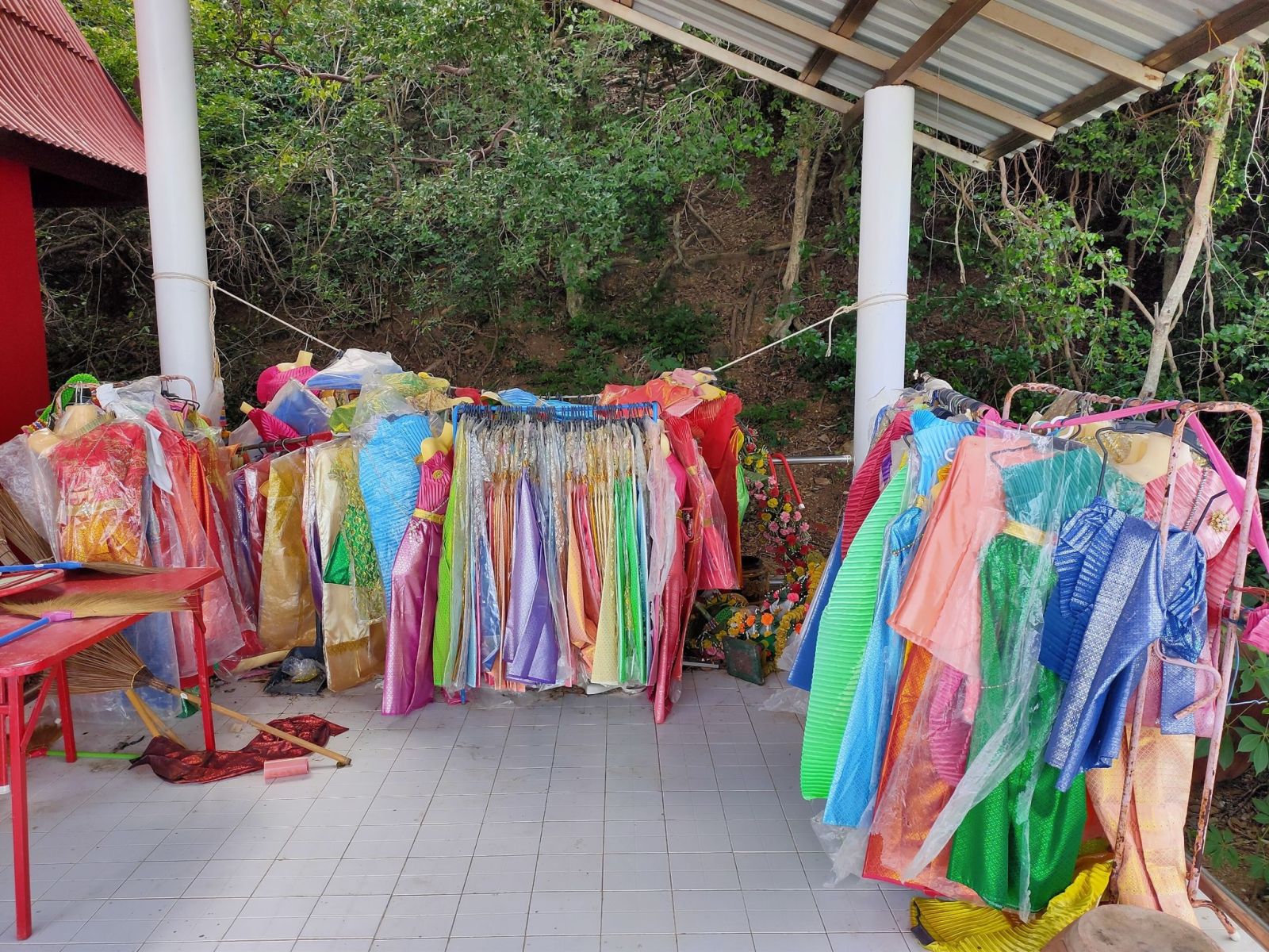 "เกาะนมสาว" แห่งนี้ มีศาลของเจ้าแม่นมสาวตั้งอยู่ ที่บนศาลนอกจากมีเสื้อยกทรงที่ชาวบ้านนำมาแก้บนแล้ว ด้านข้างก็ยังมีชุดไทยที่ชาวบ้านนำมาแก้บนไว้ก่อนหน้านี้แขวนไว้จำนวนมาก โดยในวันนี้ทุกคนต่างพากันนำเสื้อยกทรงใหม่ๆ จำนวนมาก บางคนนำไปเพื่อกราบไหว้เจ้าแม่นมสาว บางคนก็นำไปแก้บน ตามที่เคยบนบานเอาไว้