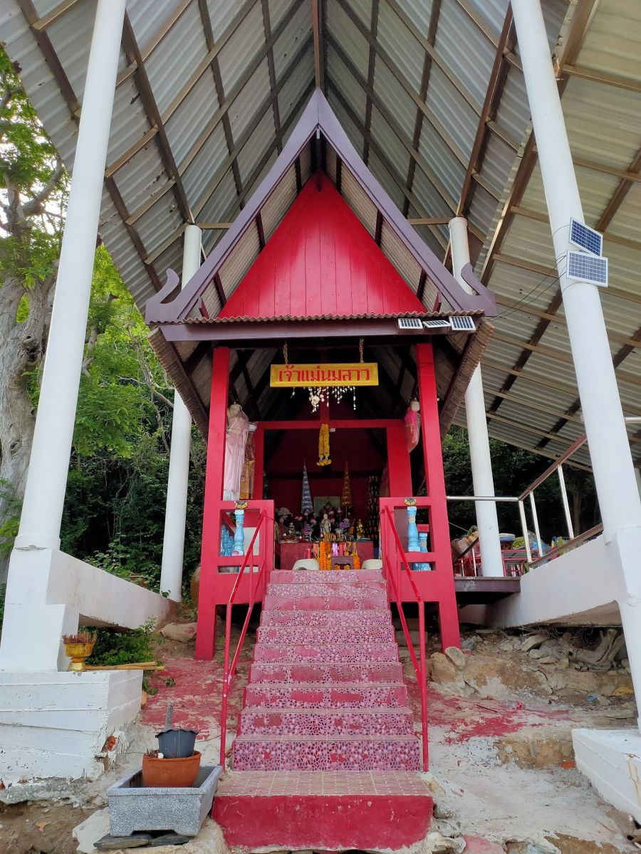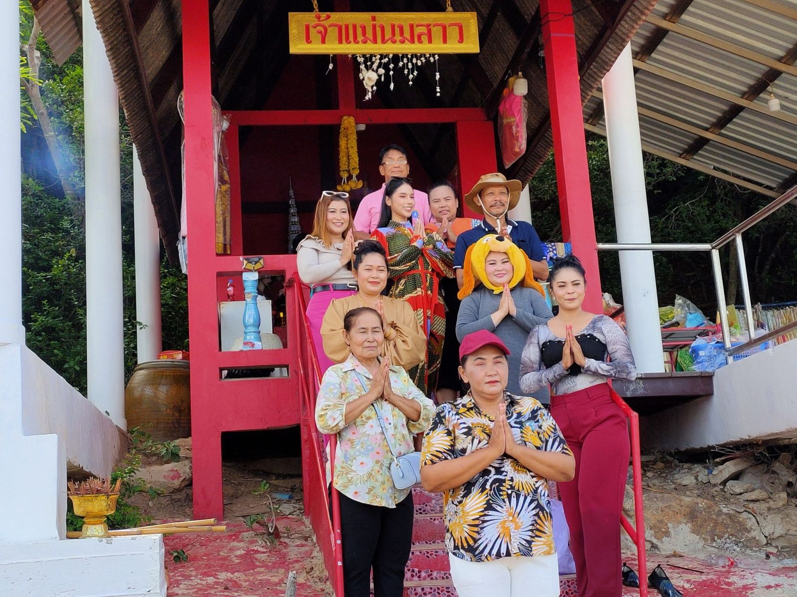 นายสุเมธ เจริญสุข ประธาน CSR ชายหาดทะเล อ.สามร้อยยอด จ.ประจวบคีรีขันธ์ พร้อมด้วย ดร. สิริกร หน่อทิม เจ้าของร้านอาหารอิ่มอก อิ่มใจ และคณะฯ นำเข้าเยี่ยมชม "ศาลเจ้าแม่นมสาว" ซึ่งทั้งอยู่บนเกาะ นมสาว ห่างจากฝั่งทะเล 1 กม. ซึ่งตัวศาลฯ มีความกว้าง ยาว 4 เมตรและมีศาลาสูงคลุมทับอีกชั้นหนึ่ง ในตรงกลางมีรูปสัญลักษณ์ "เจ้าแม่นมสาว" และเครื่องบนบานศาลกล่าว เสื้อชั้นในยกทรง และ ชุดไทยสีต่างๆ ให้ได้เห็น