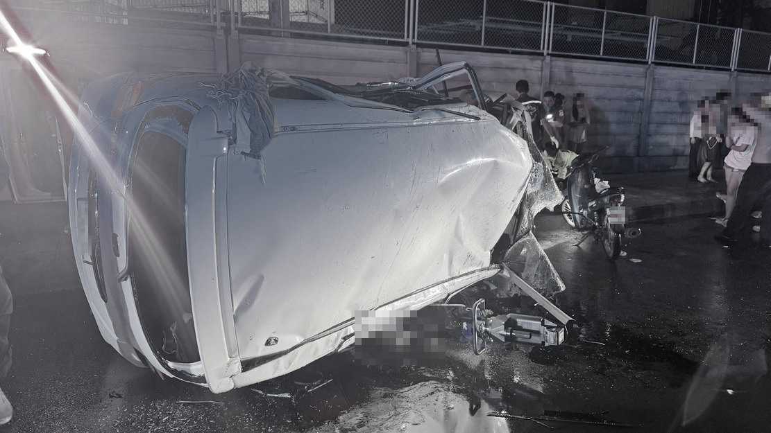 เวลา 02.40 น. วันที่ 6 มิถุนายน 2568 รับแจ้งจากมูลนิธิร่วมกตัญญู มีอุบัติเหตุรถนั่งส่วนบุคคลพลิกคว่ำและผู้บาดเจ็บติดอยู่ภายในยานพาหนะ บนถนนฉลองกรุง มุ่งหน้าต่างระดับข้ามถนนมอเตอร์เวย์ เลยซอยฉลองกรุง 2 ประมาณ 100 เมตร