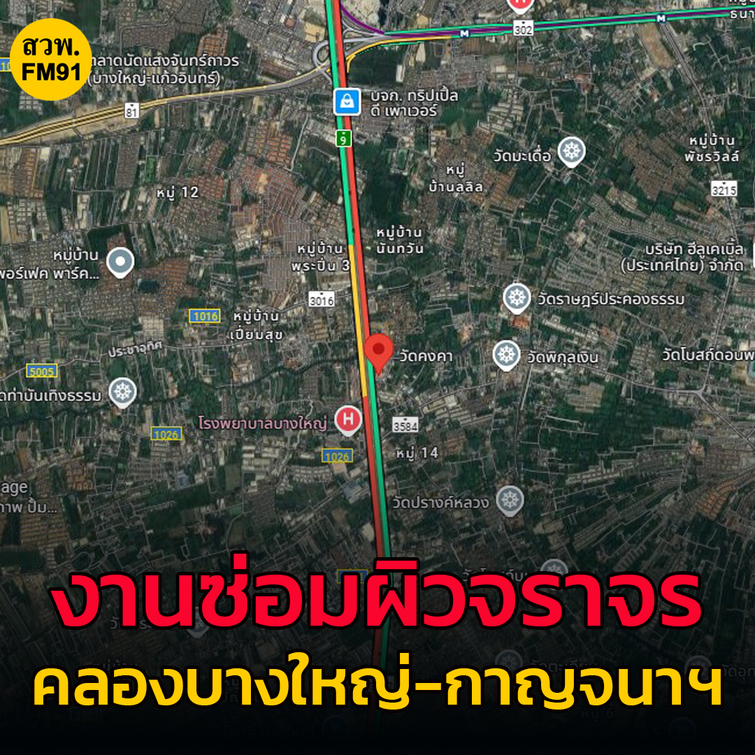- งานซ่อมพื้นผิวจราจร ถ.กาญจนาฯ บนสะพานข้ามคลองบางใหญ่ ช่องทางหลัก