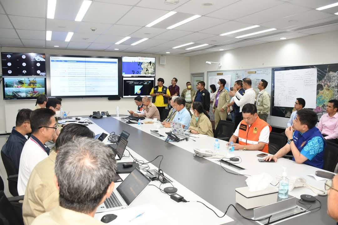 วันนี้(6 มิ.ย.68) เวลา 17.00 น. นายธวัชชัย ศรีทอง ผู้ว่าราชการจังหวัดชลบุรี, พล.ร.ต.พิสิฐ รังสีภาณุรัตน์ เสนาธิการทัพเรือภาคที่ 1 และนายกริชเพชร ชัยช่วย อธิบดีกรมเจ้าท่า, ผู้บริหารระดับสูง บริษัท ไทยออยล์ จำกัด (มหาชน) และหน่วยงานที่เกี่ยวข้อง ร่วมกันแถลงปิดศูนย์ปฏิบัติการเพื่อแก้ไขสถานการณ์ กรณีเหตุการณ์ น้ำมันดิบ รั่วไหล จากเรือบรรทุกน้ำมันดิบ ซึ่งรั่วไหลไปประมาณ 8 ตัน บริเวณทุ่น Tier 1 ห่างจากฝั่ง ศรีราชา จังหวัดชลบุรี ประมาณ 6 กิโลเมตร ซึ่งเป็นเขตนอกท่าเรือ ตามที่ได้มีข่าวนำเสนอไปนั้น ล่าสุด ได้มีการควบคุมน้ำมันดิบรั่วไหลได้หมดเป็นที่เรียบร้อยแล้ว
