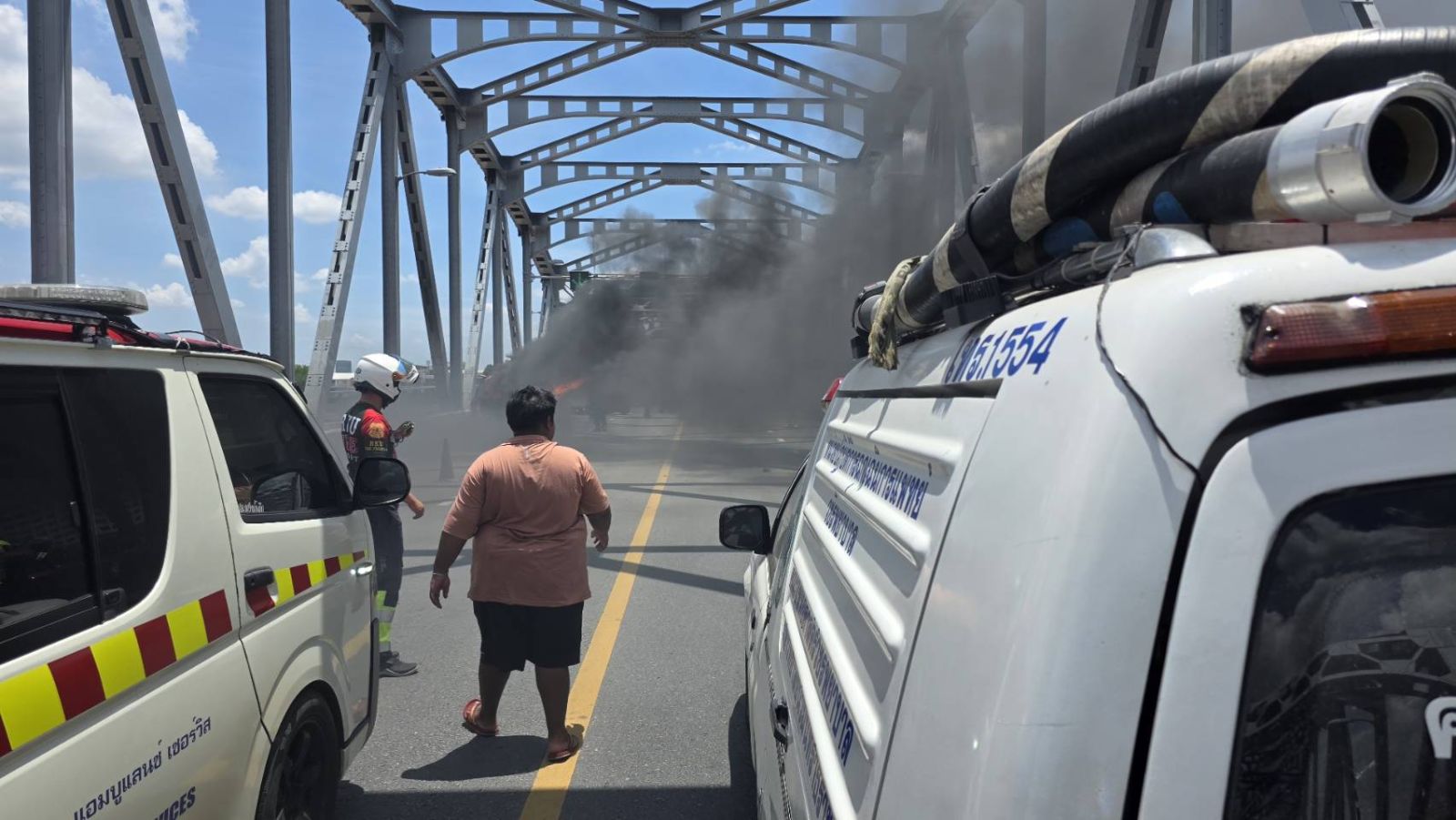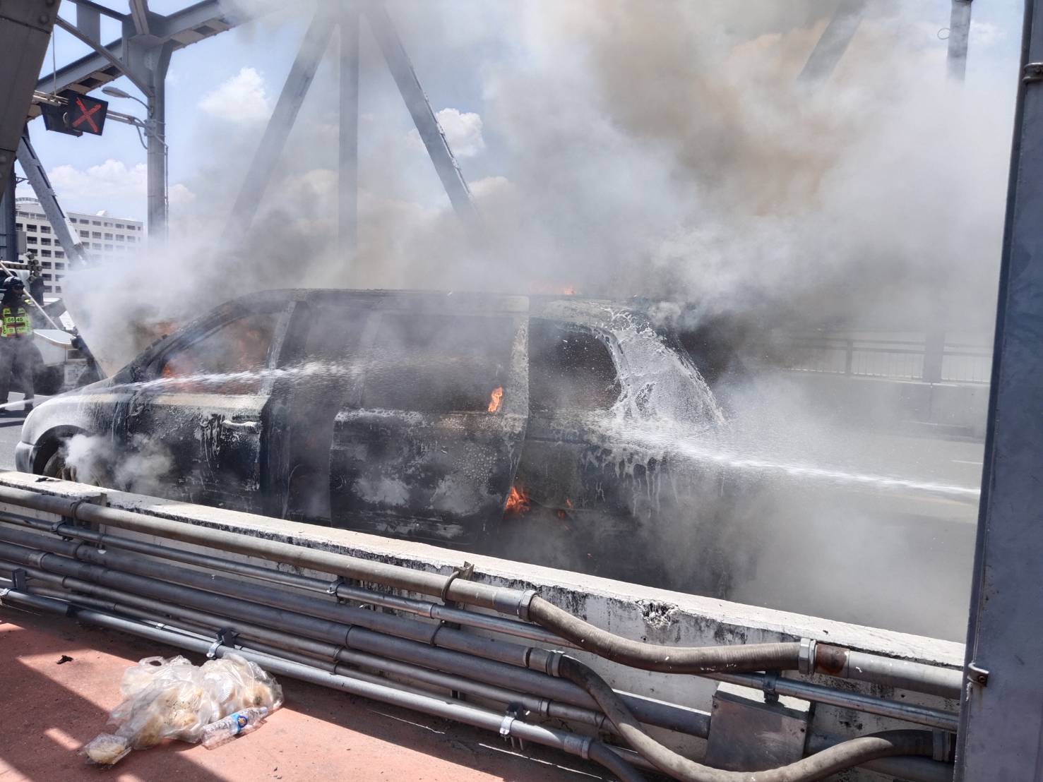 วันที่ 7 มิถุนายน 2568 เวลา 12.30 น. รับแจ้งจากสถานีดับเพลิงและกู้ภัยสามเสน เหตุเพลิงไหม้รถยนต์ บริเวณกลางสะพานกรุงธน (ฝั่งขาเข้า) ถนนราชวิถี แขวงวชิรพยาบาล เขตดุสิต กทม. เจ้าหน้าที่สถานีดับเพลิงและกู้ภัยบวรมงคล กำลังไปที่เกิดเหตุ