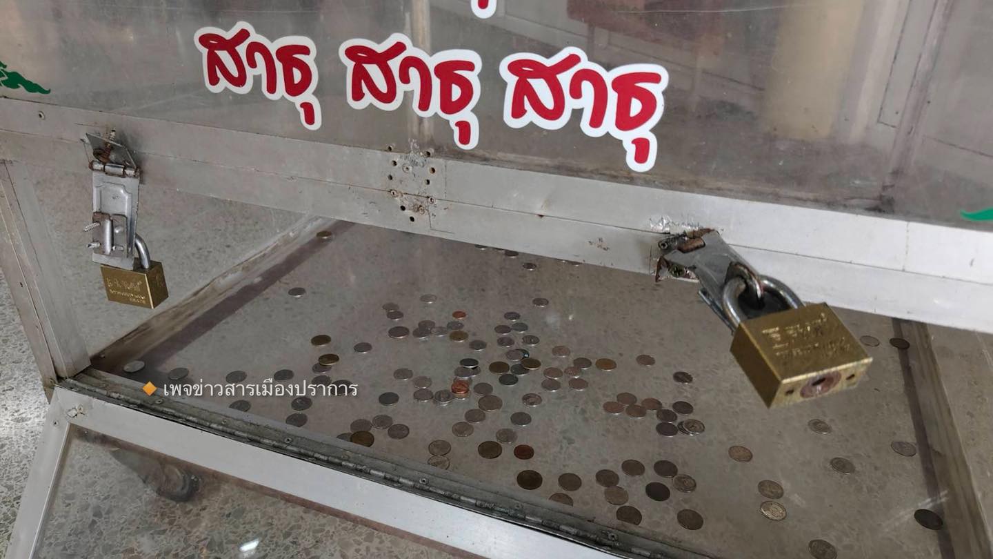 ที่เกิดเหตุพบตู้บริจาคยังคงตั้งอยู่บริเวณศาลากลาง ภายในตู้พบเพียงเหรียญบาทและเหรียญห้าบาทกระจายเกลื่อนราวกับโจรเมินเงินเหรียญ หอบเอาแต่แบงก์ หนีหายไปหมด และความเสียหายให้พระท่านต้องมานั่งเก็บกวาด