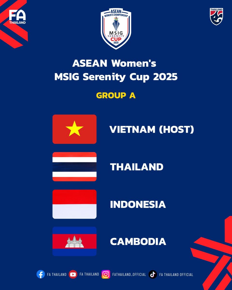 ฟุตบอลหญิงไทย ร่วมสาย เวียดนาม, อินโดนีเซีย, กัมพูชา ศึกชิงแชมป์ อาเซียน 2025 ที่ เวียดนาม