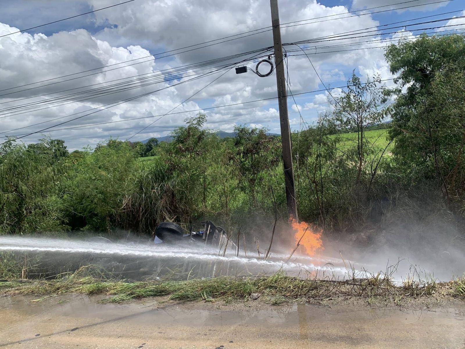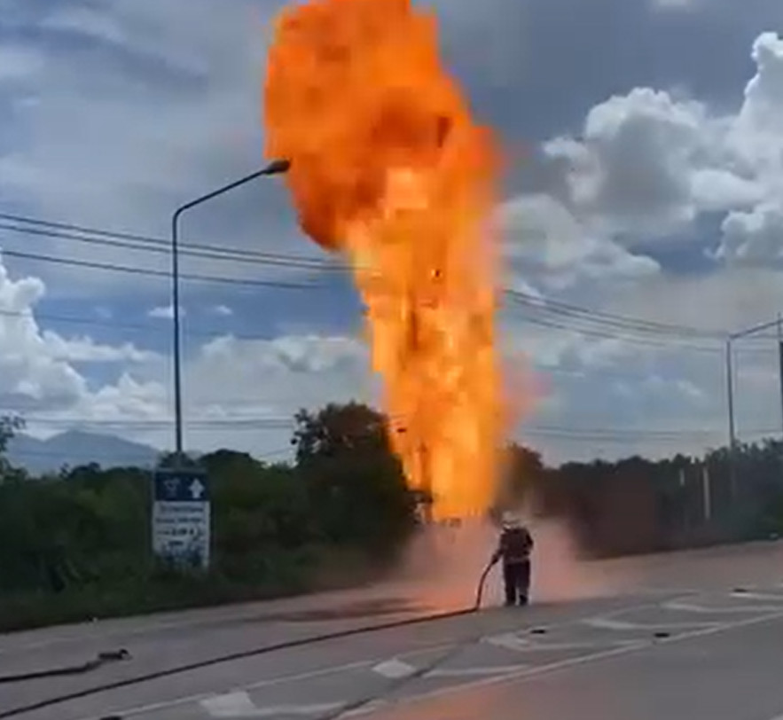 รถบรรทุกถังแก๊สหุงต้มพลิกคว่ำระเบิดสนั่น ไฟลุกไหม้รถวอดทั้งคัน