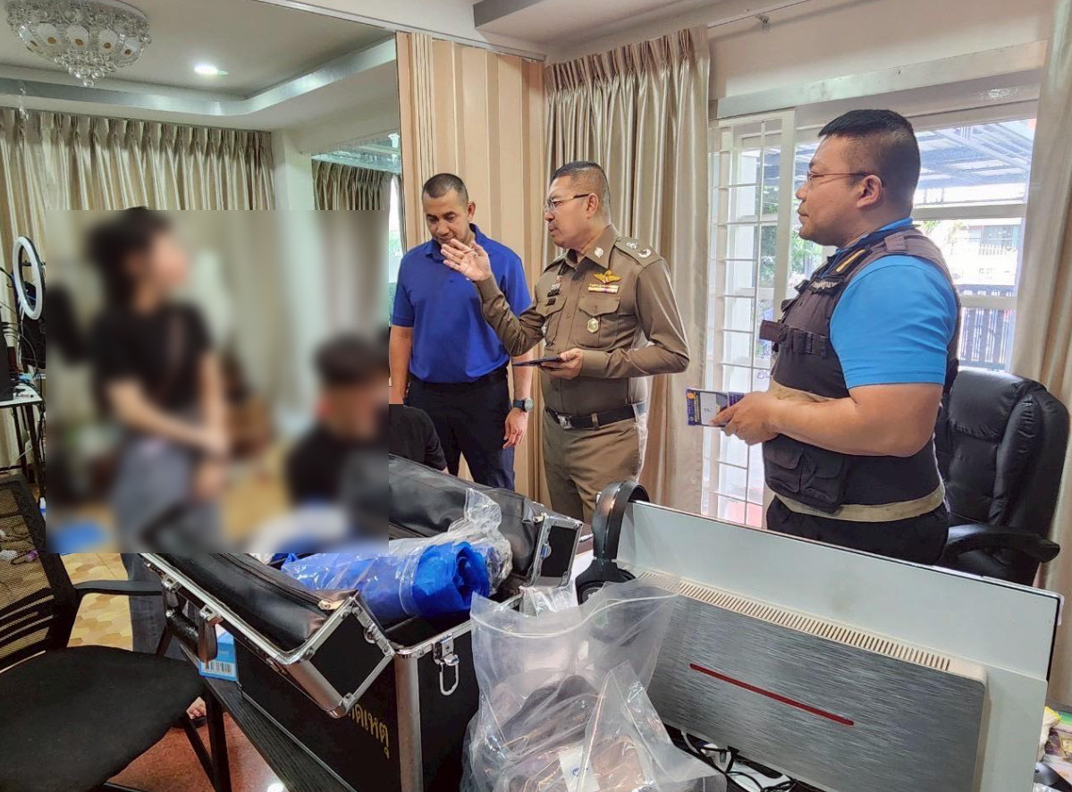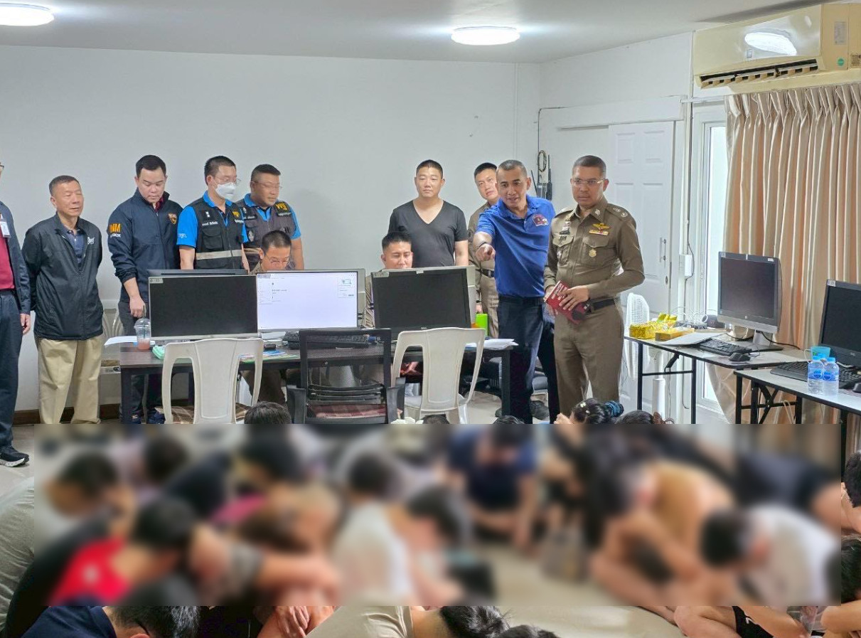 พล.ต.ต.นพศิลป์ กล่าวว่า ตำรวจ 191 ได้รับร้องเรียกจากประชาชนว่าพบกลุ่มชาวต่างชาติจับกลุ่มมั่วสุมกันเป็นจำนวนมาก ตำรวจสายตรวจ 191 จึงได้ลงพื้นที่ตรวจสอบและสืบสวนพบว่ามีบุคคลต่างด้าวเช่าบ้านจำนวน 2 หลัง ในหมู่บ้านหรูย่านชานเมือง และมีพฤติกรรมน่าสงสัยจึงได้ทำการขอหมายค้นเพื่อทำการเข้าตรวจสอบ โดยหลังแรกพบบุคคลต่างด้าว 18 ราย และ หลังที่สองอีก 9 ราย เป็นหญิง 5 ราย และ ชาย 22 ราย รวมทั้งสิ้น 27 ราย พร้อมของกลาง โทรศัพท์มือถือ 116 เครื่อง คอมพิวเตอร์ 45 เครื่อง และยาเสพติด (เคตามีน) 5 กรัม