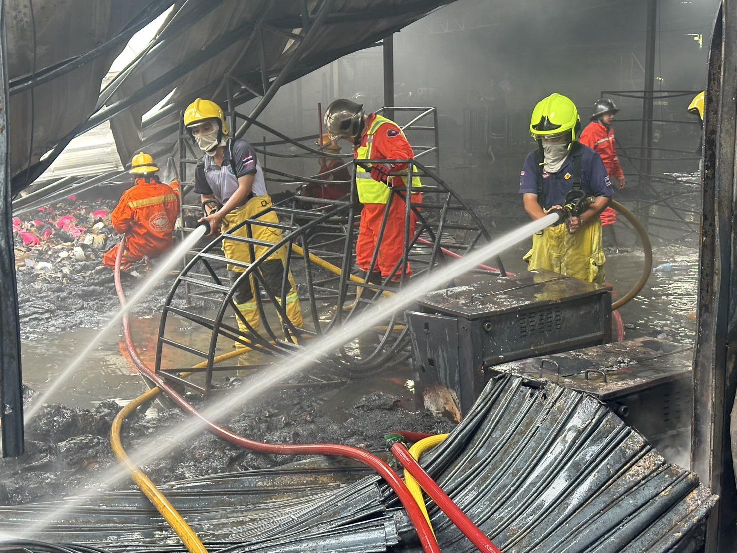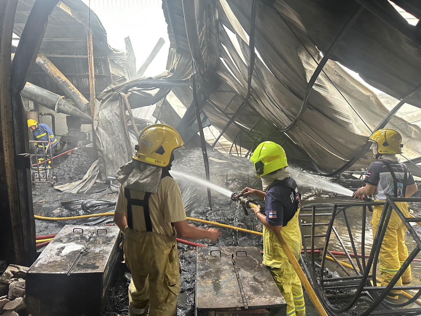 วันนี้ 11 มิ.ย.68 เวลาประมาณ 17.00 น. เจ้าหน้าที่สภ.ย่อยน้ำบางจืด อ.เมืองฯ จ.สมุทรสาคร ได้รับแจ้งเหตุเพลิงไหม้ ในโรงงานผลิตหมวกกันน๊อค ในพื้นที่ตำบลบางน้ำจืด อ.เมืองฯ จ.สมุทรสาคร จึงประสานรถน้ำดับเพลิง จากอบต. ,ทต.,ทม. พื้นที่ใกล้เคียงระดมกำลังเข้าระงับเหตุ ซึ่งที่เกิดเหตุเป็นโรงงาน ลักษณะเป็นอาคารชั้นเดียว ผลิตหมวกกันน๊อค บนเนื้อที่ 2 ไร่เศษ โดยไฟได้โหมลุกไหม้ที่บริเวณส่วนด้านหลัง ความรุนแรงของเปลวเพลิง ทำให้โครงสร้างหลังคายุบตัวลงมา โชคดีที่ไม่ลุกลามไปยังโรงงานข้างเคียง ทั้งนี้เจ้าหน้าที่ต้องใช้เวลานานเกือบ 1 ชั่วโมง จึงควบคุมเพลิงให้สงบลงได้ เบื้องต้นตอนเกิดเหตุนั้นเป็นช่วงที่กำลังจะเลิกงานแล้ว ทำให้คนงานรีบวิ่งหนีกันออกมาได้ ไม่มีใครได้รับบาดเจ็บหรือเสียชีวิต ส่วนสาเหตุนั้นทางเจ้าหน้าที่ตำรวจจะได้ประสานเจ้าหน้าที่วิทยาการเข้ามาตรวจสอบ รวมถึงการประเมินความเสียหายด้วย