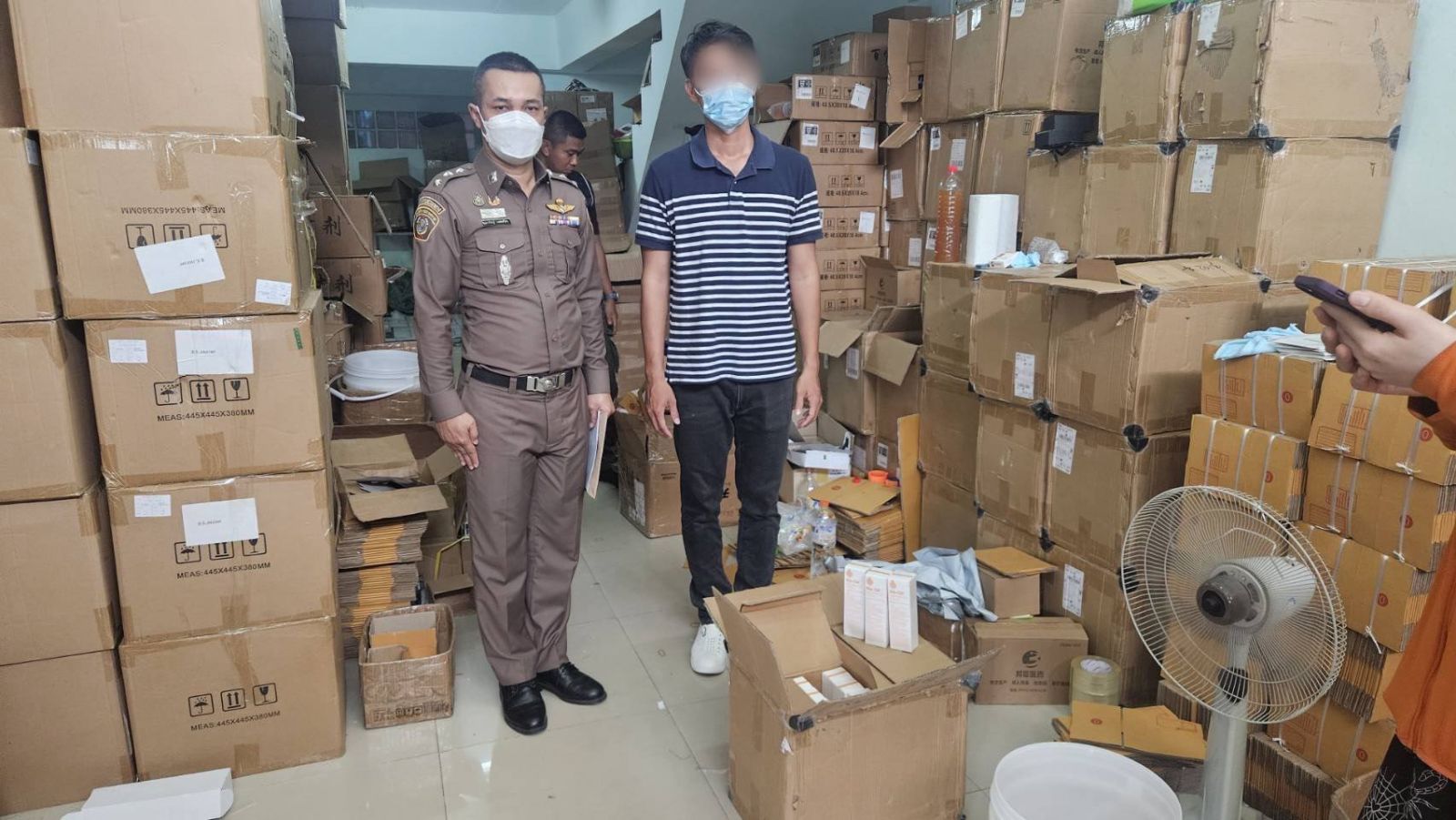 จากการตรวจสอบเป็นสินค้าที่ปลอมเครื่องหมายการค้า จึงได้ร่วมกันตรวจยึดสินค้าดังกล่าว ซึ่งจากการตรวจสอบเบื้องต้นร่วมกับตัวแทนผลิตภัณฑ์ พบว่าของกลางที่ตรวจพบมีการปลอมผลิตภัณฑ์ และกล่องแพ็กเกจมาจากโรงงานต้นทาง จากนั้นจะส่งมายังสถานที่ตรวจค้นทั้ง 3 จุด ในครั้งนี้ พร้อมกับจับกุมบุคคล ที่เป็นเจ้าของสินค้าปลอมดังกล่าว โดยผู้ต้องหาเป็นเจ้าของและผู้ครอบครองสถานที่ทั้ง 3 จุด ซึ่งมีความเกี่ยวข้องกัน และที่ตั้งอยู่ห่างกันไม่มาก นำตัวพร้อมของกลางส่งพนักงานสอบสวน กก.1 บก.ปอศ. เพื่อดำเนินคดีตามกฎหมาย
