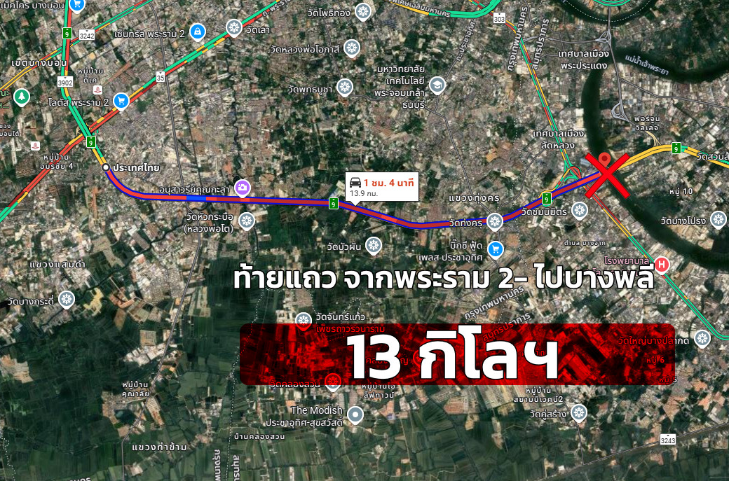 ฝั่งกลับกัน จากปากน้ำไปลงบางขุนเทียน พระราม 2 ก็หนาแน่น ปัญหาส่วนหนึ่งสะสมจากกรณีฝนตกในพื้นที่เขตบางขุนเทียนก่อนหน้านั้น