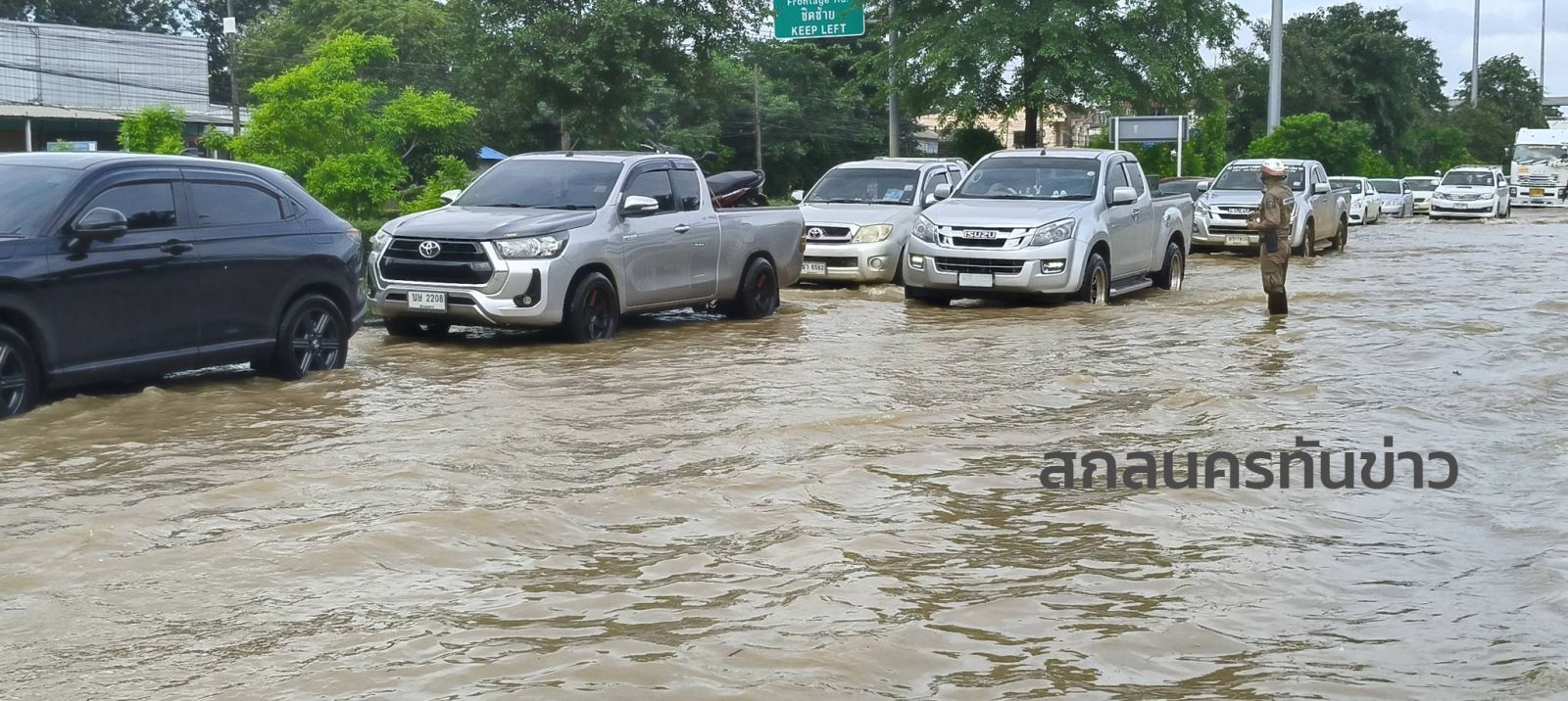 เพจเฟซบุ๊กสกลนครทันข่าว รายงานล่าสุด 13 มิ.ย.2568 เวลา 16.00 น. เส้นทางถนนนิตโย บริเวณช่วงหน้า โรงเรียนธาตุนารายณ์วิทยา อ.เมือง สกลนคร มีสถานการณ์น้ำท่วมสูง เนื่องจากพื้นที่ฝนตกหนักต่อเนื่อง นำจากลำห้วยทรายเอ่อไหลเข้าท่วมถนน ส่งผลให้การจราจรบนถนนนิตโย เส้นทางตัวเมือง-อ.พรรณานิคม สัญจรได้ลำบาก โดยมีเจ้าหน้าที่ตำรวจราจรลงพื้นที่ จัดการจราจรให้รถวิ่งเลนขวาสุด แนะรถยนต์ขนาดเล็กหลีกเลี่ยงเส้นทางดังกล่าว