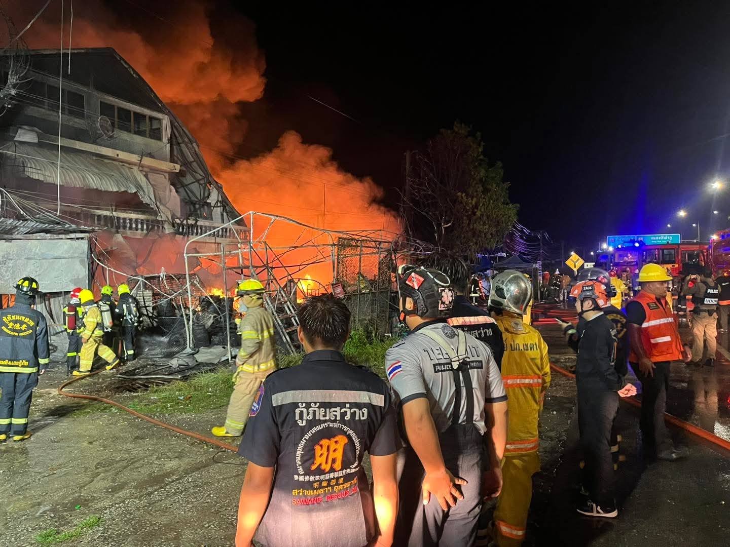 ไฟไหม้โกดังสินค้าร้านขายส่งพลาสติก ริมถนนรอบเมืองอุดรธานี เจ้าหน้าที่พร้อมด้วยรถดับเพลิงยังระดมฉีดน้ำเพื่อสกัดเพลิง