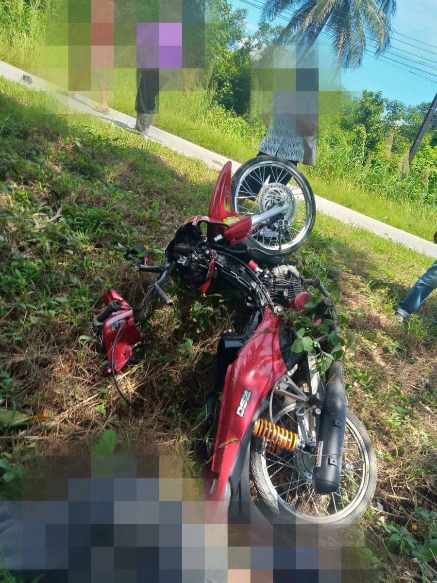 ที่เกิดเหตุ พบรถจักรยานยนต์ ฮอนด้า สีแดง ป้ายทะเบียน ระนอง ลักษณะพลิกคว่ำอยู่ข้างทาง ใกล้กับพบว่ามีผู้เสียชีวิต 1 ราย เป็นผู้ชาย อายุ 17 ปี เป็นผู้โดยสารนั่งซ้อนท้ายรถ