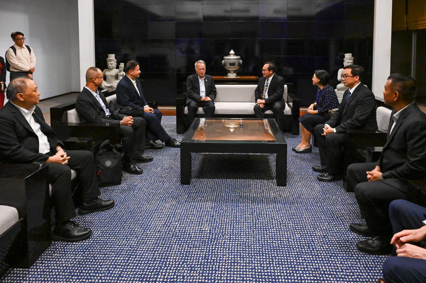 เอกอัครราชทูตประศาสน์ ประศาสน์วินิจฉัย ประธานกรรมาธิการเขตแดนร่วมไทย-กัมพูชา ฝ่ายไทย พร้อมคณะฝ่ายไทยเดินทางถึงกรุงพนมเปญ เพื่อเข้าร่วมการประชุมกรรมาธิการเขตแดนร่วมไทย-กัมพูชา ครั้งที่ 6 โดยมีนาย Khum Ponnaban อธิบดีกรม Technique of Border Affairs General Department หน่วยงาน State Secretariat of Border Affairs (เทียบเท่ากระทรวง) ของกัมพูชา ให้การต้อนรับที่ท่าอากาศยานนานาชาติกรุงพนมเปญ