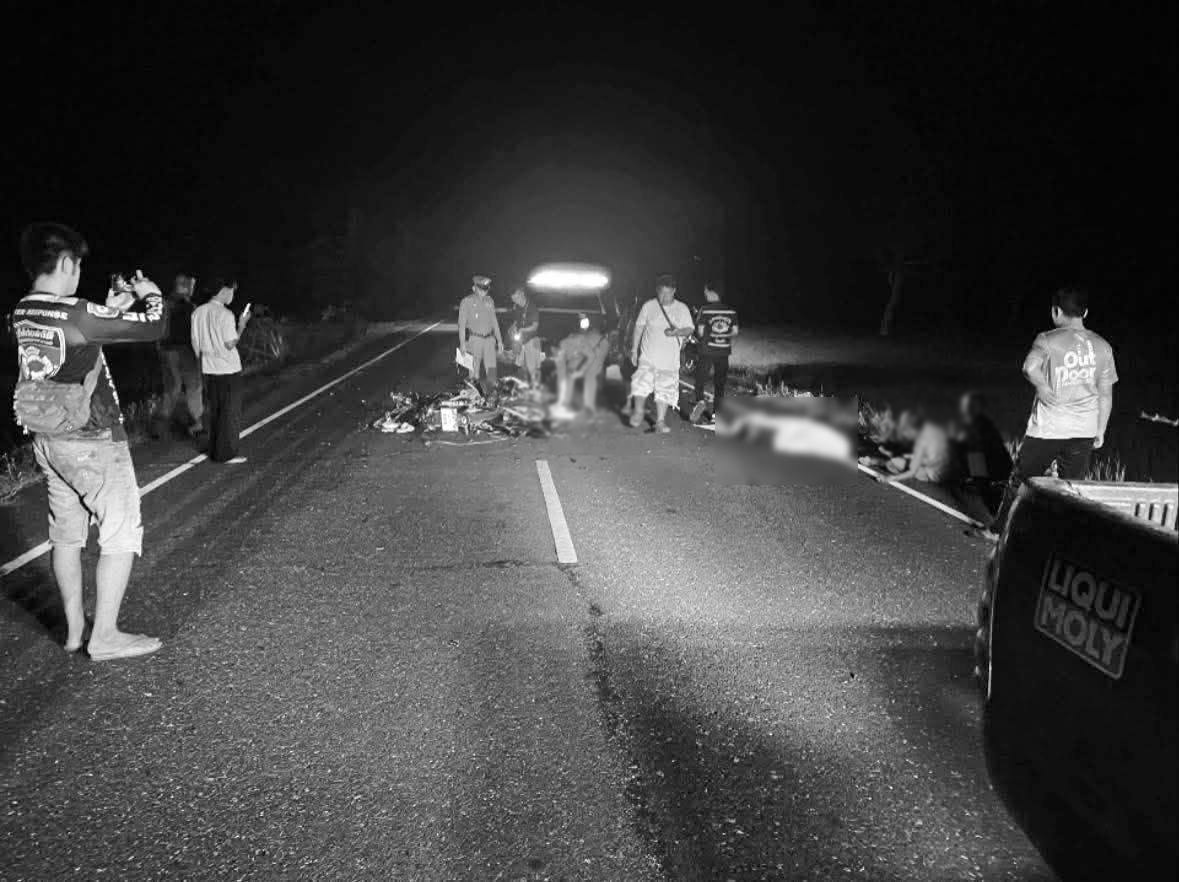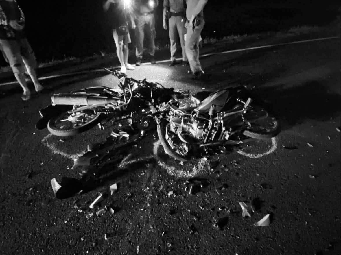 รถจักรยานยนต์ 2 คันชนกันกลางถนนเส้นทาง บ้านหนองม่วงส้ม - บ้านขี้เหล็ก มีผู้เสียชีวิตเป็นเด็กชาย 2 ราย จ.ร้อยเอ็ด