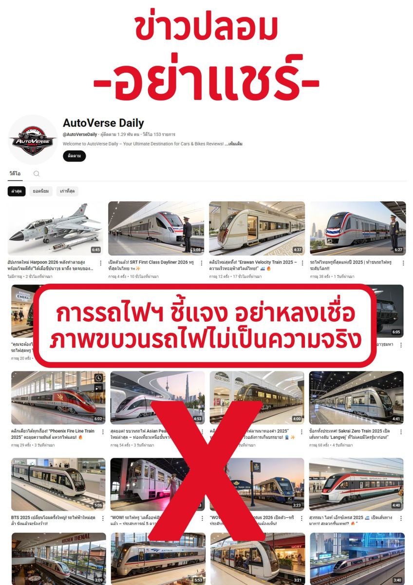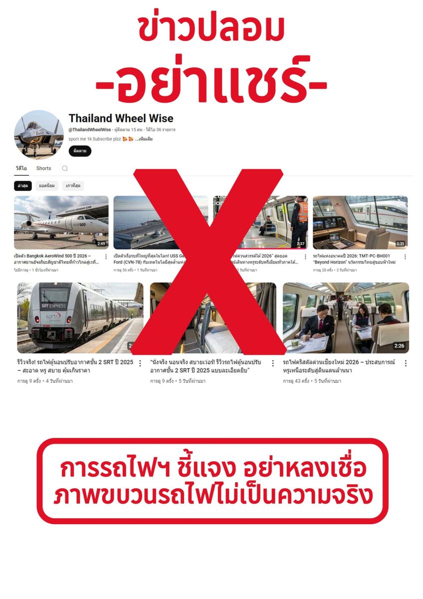 การรถไฟฯ ขอชี้แจงว่า ข้อมูลที่เผยแพร่ในลักษณะดังกล่าว ไม่เป็นความจริง และถือเป็นข่าวปลอม (Fake News)