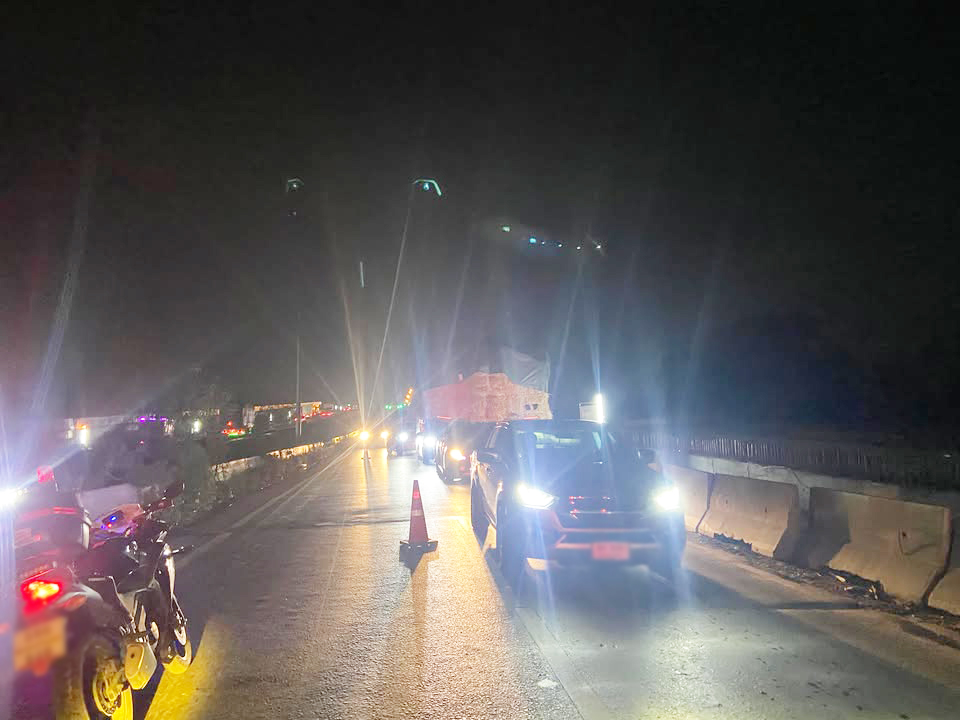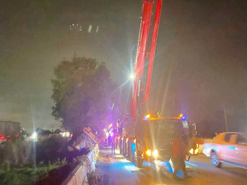 เวลา 23.10 น. ขณะนี้รถยกและรถเครนขนาดใหญ่ กำลังเก็บกู้ เจ้าหน้าที่ปิดการจราจรชั่วคราว รถติดขัด