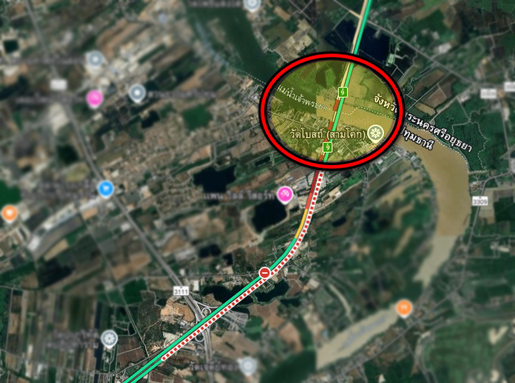 วันที่ 17 มิถุนายน 2568 ถนนกาญจนาภิเษก ฝั่งตะวันตก (ทางหลวงหมายเลข 9) ฝั่งมุ่งหน้าบางปะอิน ช่วงเชิงทางลงสะพานข้ามแม่น้ำเจ้าพระยา ช่วง กม.ที่ 72/800
