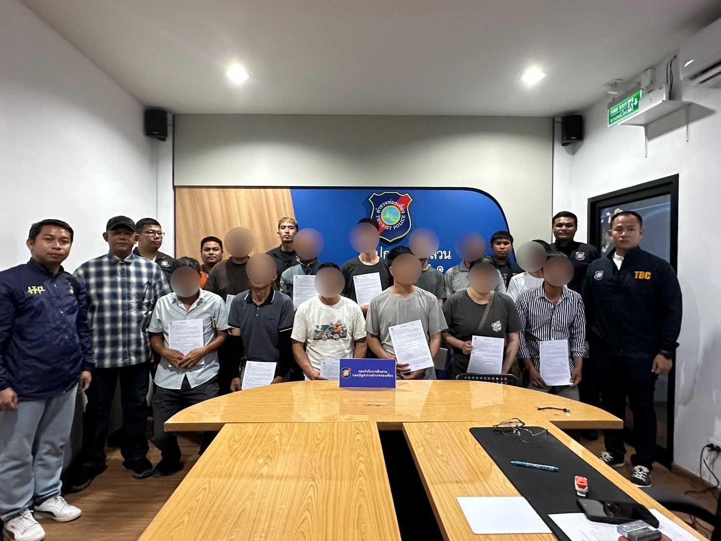 พ.ต.ท.กฤตพร แสงสุระ สว.กก.สืบสวน บช.ทท. ร.ต.อ.ภัทรพล ชูชื่อ, ร.ต.อ.วรินทร์ ศรีมนัสรัตน์ รอง สว.กก.สืบสวน บช.ทท พร้อม ด้วยเจ้าหน้าที่ตําารวจชุดสืบสวนกองบัญชาการตํารวจท่องเที่ยว ได้ร่วมกันทําการจับกุมผู้ต้องหาชาวจีนจํานวน 23 ราย