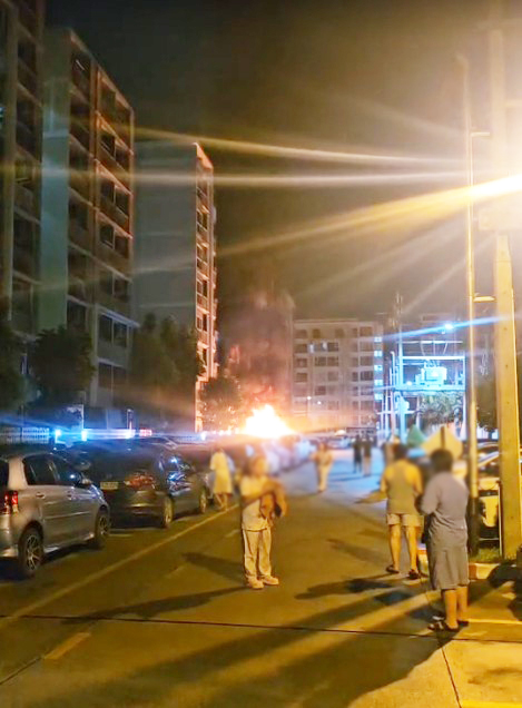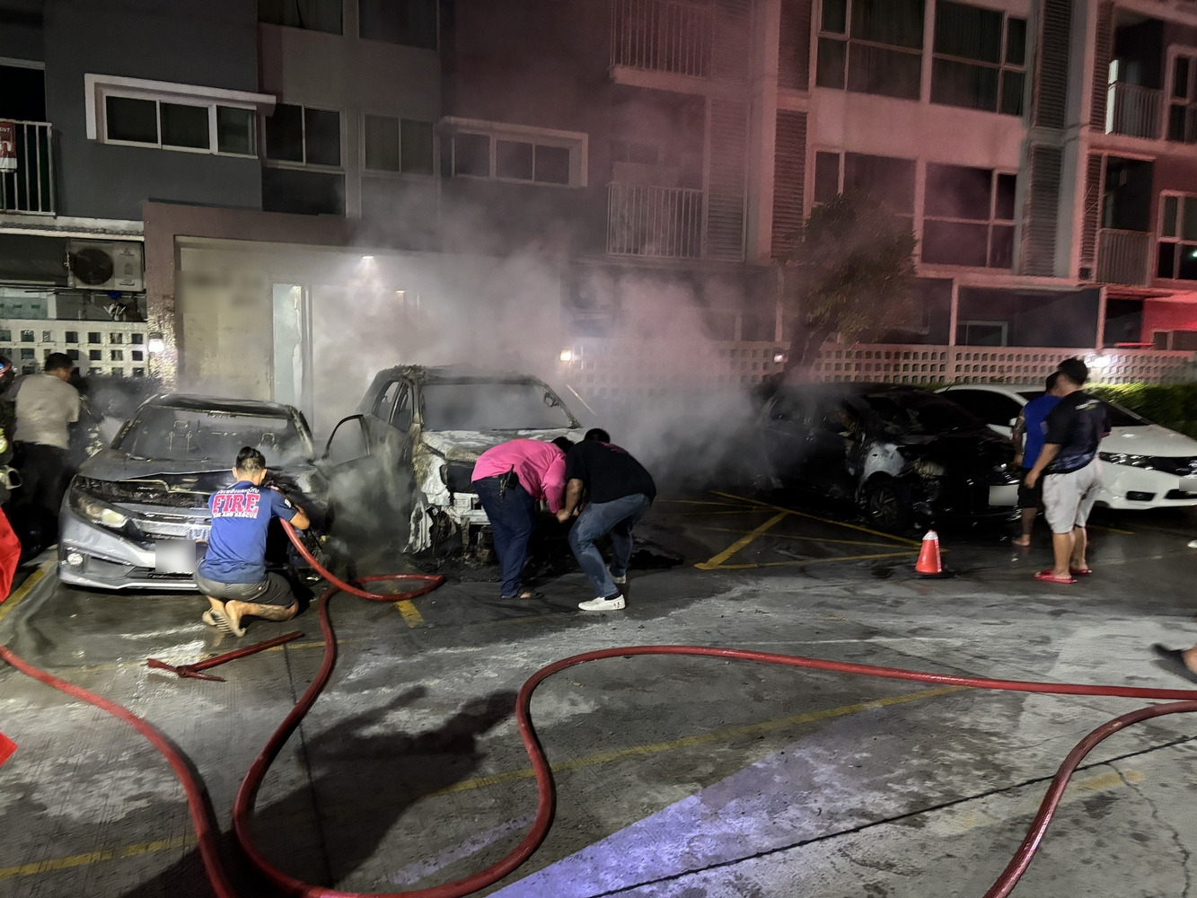 เพลิงไหม้รถยนต์ บริเวณลานจอดรถข้างคอนโดฯ ย่านถนนกัลปพฤกษ์ เสียหายหลายคัน