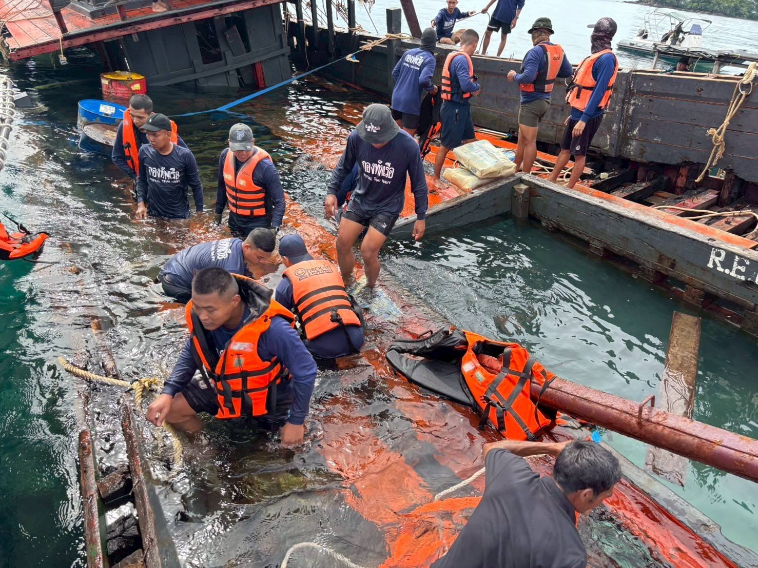 เจ้าหน้าที่ได้ดำเนินการเคลื่อนย้ายกระสอบปูนซีเมนต์ออกจากตัวเรือจนหมดสิ้น โดยพบว่าในห้องเก็บสินค้าไม่มีสินค้าอื่นใดเหลืออยู่ ขั้นตอนสำคัญคือการติดตั้งและเคลื่อนย้ายตำแหน่งถังน้ำขนาด 200 ลิตรไปยังจุดที่ต้องการให้เรือลอยขึ้น พร้อมยึดให้แน่นหนา