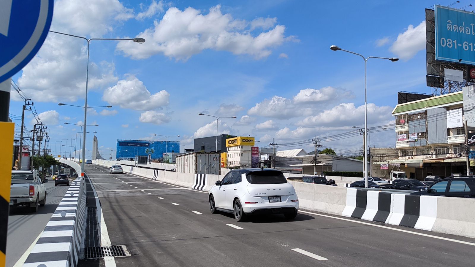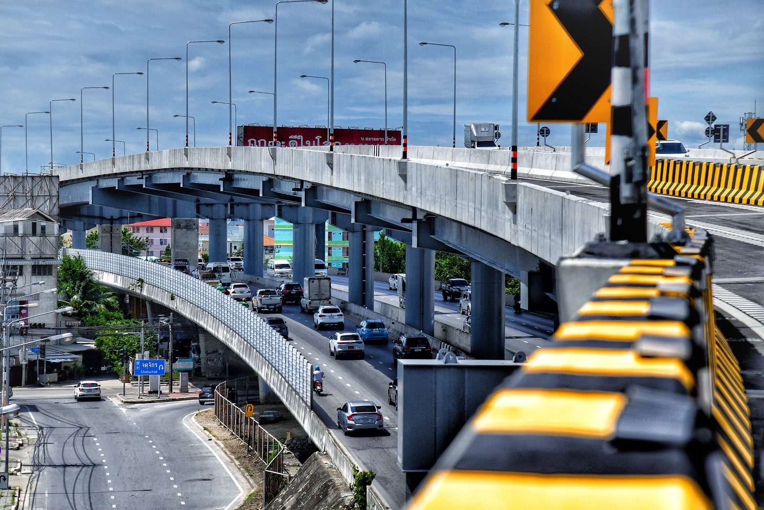 ทั้งนี้ โครงการดังกล่าว มีจุดเริ่มต้นโครงการ กม.ที่ 12+850 และสิ้นสุด กม.ที่ 15+100 มีรูปแบบสะพานเหล็กขนาด 2 ช่องจราจรต่อทิศทาง (ไป – กลับ) กว้าง 8.50 เมตร ฝั่งขาเข้ากรุงเทพฯ มีความยาว 2.10 กิโลเมตร และฝั่งขาออกกรุงเทพฯ มีความยาว 1.90 กิโลเมตร รวมทั้งมีงานก่อสร้างระบบระบายน้ำ ระบบไฟฟ้าแสงสว่าง และงานเบ็ดเตล็ด ใช้งบประมาณในการก่อสร้าง 1,181.515 ล้านบาท ปัจจุบันได้ดำเนินการเสร็จสมบูรณ์และเปิดให้ประชาชนได้ใช้สัญจรเป็นที่เรียบร้อยแล้ว