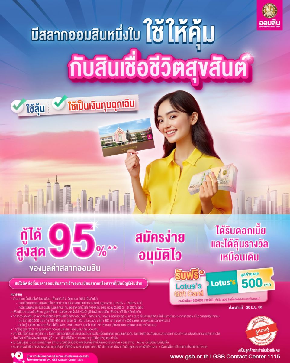 •**กู้ได้สูงสุด 95% ของมูลค่าสลากออมสินพิเศษ หรือสมุดฝากเงินออมสิน