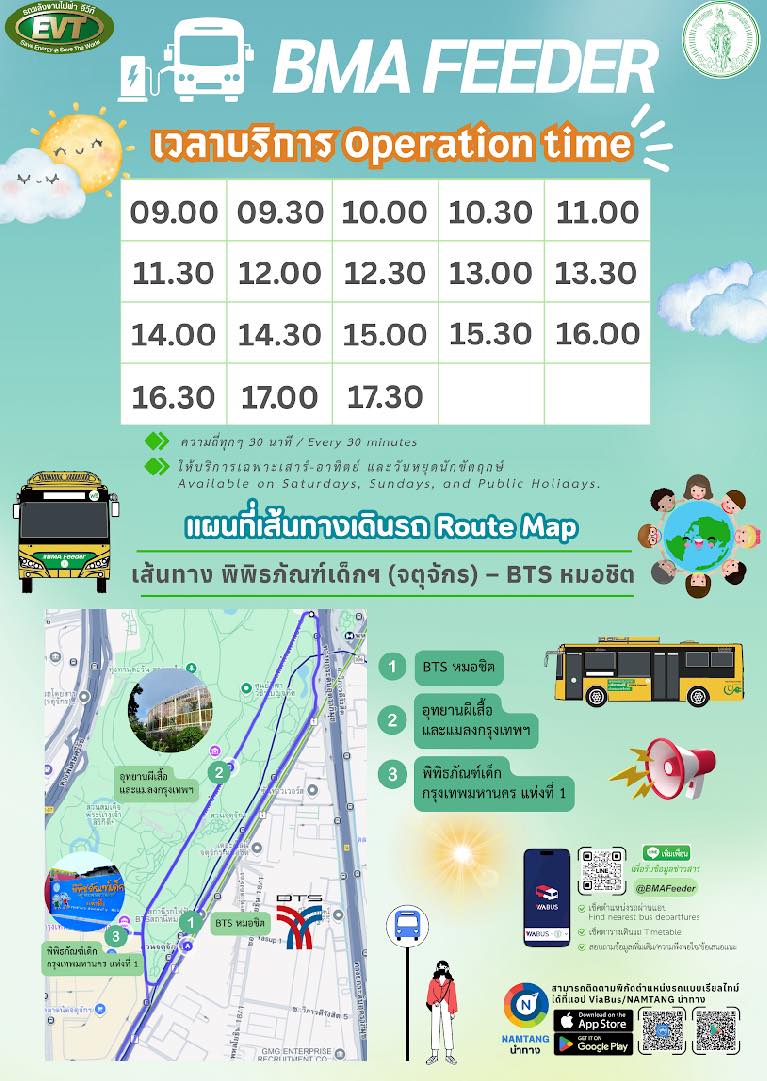 (23 มิ.ย. 68) นายเอกวรัญญู อัมระปาล โฆษกของกรุงเทพมหานคร เปิดเผยถึงโครงการ "BMA Feeder" ว่า ปัจจุบันกรุงเทพมหานครให้บริการ "BMA Feeder" จำนวน 2 เส้นทาง ได้แก่ 1.เส้นทาง วัดปุรณาวาส - ตรงข้ามสะพานพุทธ ให้บริการวันจันทร์-วันศุกร์ ระหว่างเวลา 06.00-20.00 น. 2.เส้นทาง ตลาดธนบุรี - MRT หลักสอง ให้บริการทุกวันระหว่างเวลา 06.00-20.00 น. โดยเปิดให้บริการตั้งแต่วันที่ 9 ธ.ค.67 และมีกำหนดจะเปิดให้บริการเพิ่มเติมอีก 5 เส้นทาง ในวันที่ 1 ก.ค.68 ประกอบด้วย 1.เส้นทาง ดินแดง - BTS สนามเป้า ให้บริการทุกวันระหว่างเวลา 06.00-20.00 น. 2.เส้นทาง MRT บางขุนนนท์ - 4 ตลาดน้ำตลิ่งชัน ให้บริการเฉพาะวันเสาร์ วันอาทิตย์ และวันหยุดนักขัตฤกษ์ เวลา 09.00-17.30 น. 3.เส้นทาง ถ.สามเสน เชื่อมต่อฝั่งธนบุรี (ตั้งฮั่วเส็ง) ให้บริการวันจันทร์-วันศุกร์ ระหว่างเวลา 06.00-19.00 น. 4.เส้นทาง ชุมชนเคหะร่มเกล้า - ARL ลาดกระบัง ให้บริการทุกวันระหว่างเวลา 06.00-20.00 น. และ 5. เส้นทาง พิพิธภัณฑ์เด็กฯ (จตุจักร) - BTS หมอชิต ให้บริการเฉพาะวันเสาร์ วันอาทิตย์ และวันหยุดนักขัตฤกษ์ เวลา 09.00-17.30 น.