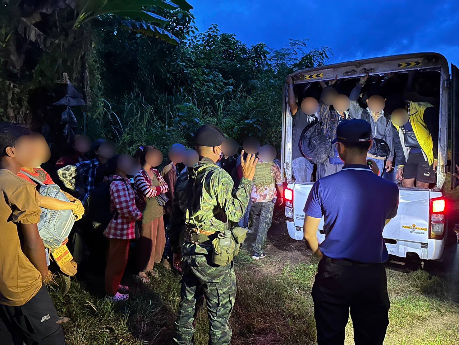 ทหาร ฉก.ลาดหญ้า กกล.สุรสีห์ สกัดจับแรงงานเถื่อนซุกกระบะตู้ทึบกว่าครึ่งร้อยชีวิต